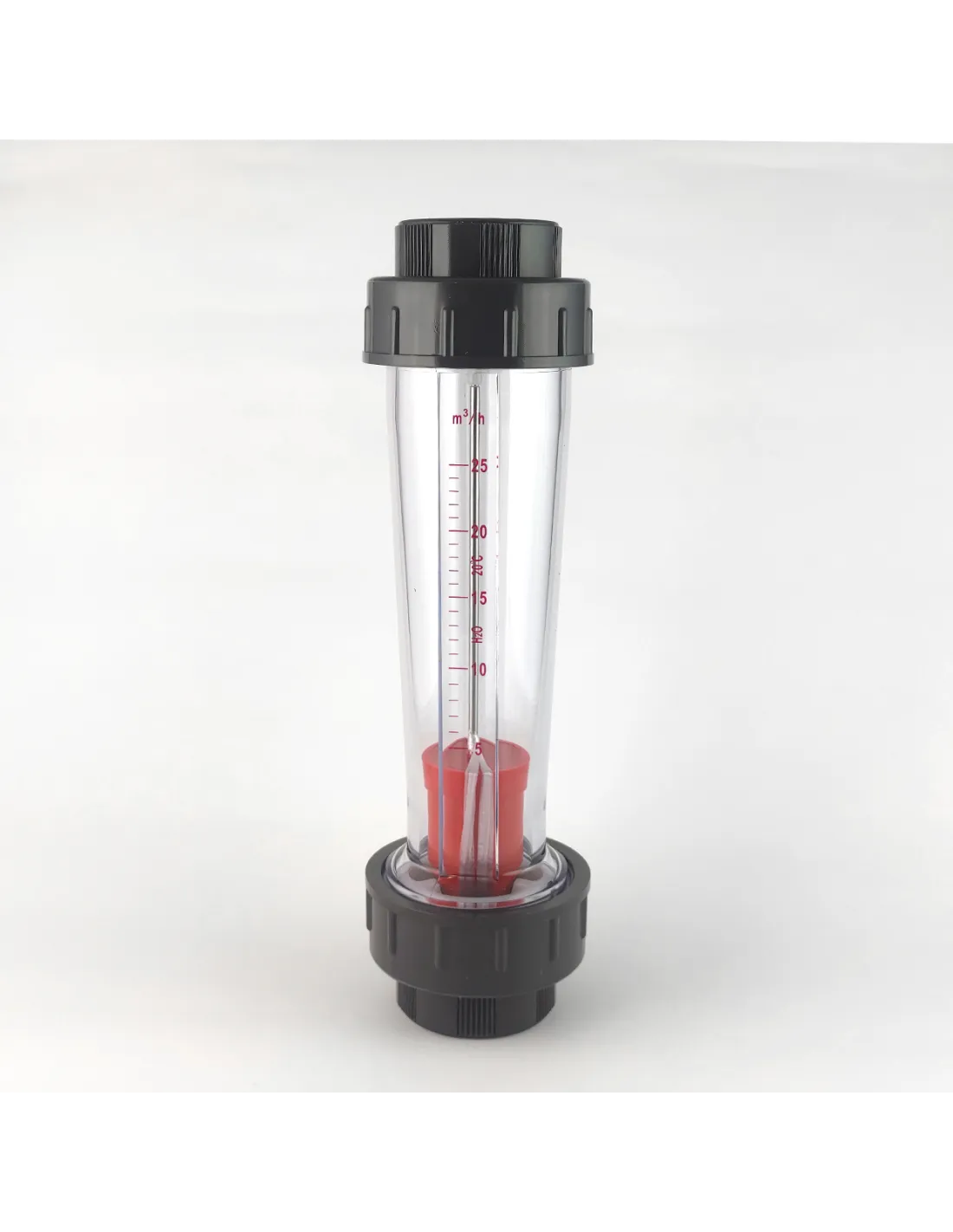 Ротаметр трубного типа Raifil LZS-65D/R 5-25 – прибор определения объемного расхода воды за единицу времени. Состоит из прозрачного корпуса с отсеком для воды и поплавка. В зависимости от интенсивности потока поплавок поднимается на определенный уровень, которому соответствует значение на шкале. Монтируется на вертикальном трубопроводе с направлением течения снизу вверх. Измерение скорости потока воды в данной модели L/H от 5 до 25 литров в час.