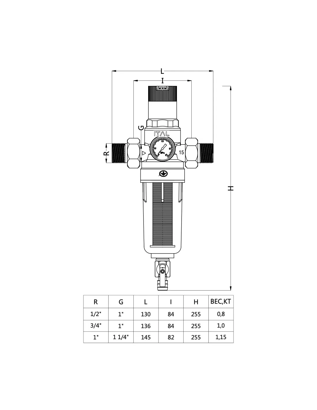 Самопромывной фильтр ITAL IT34-H8902 3/4 дюйма с манометром и редуктором давления