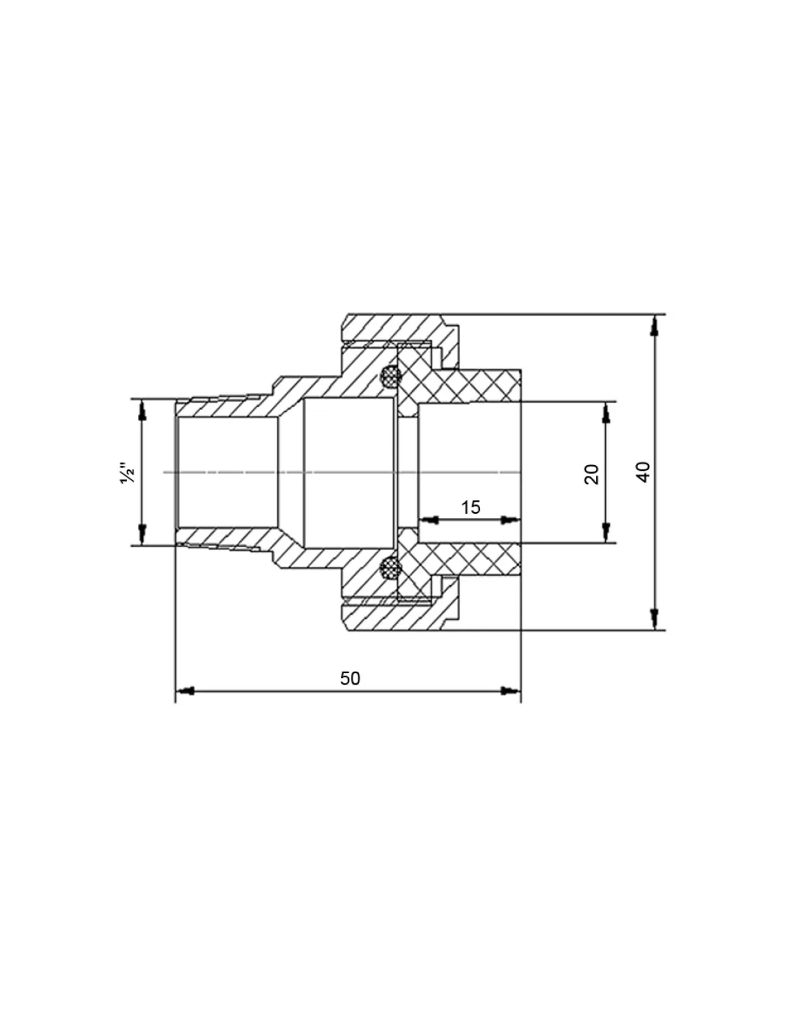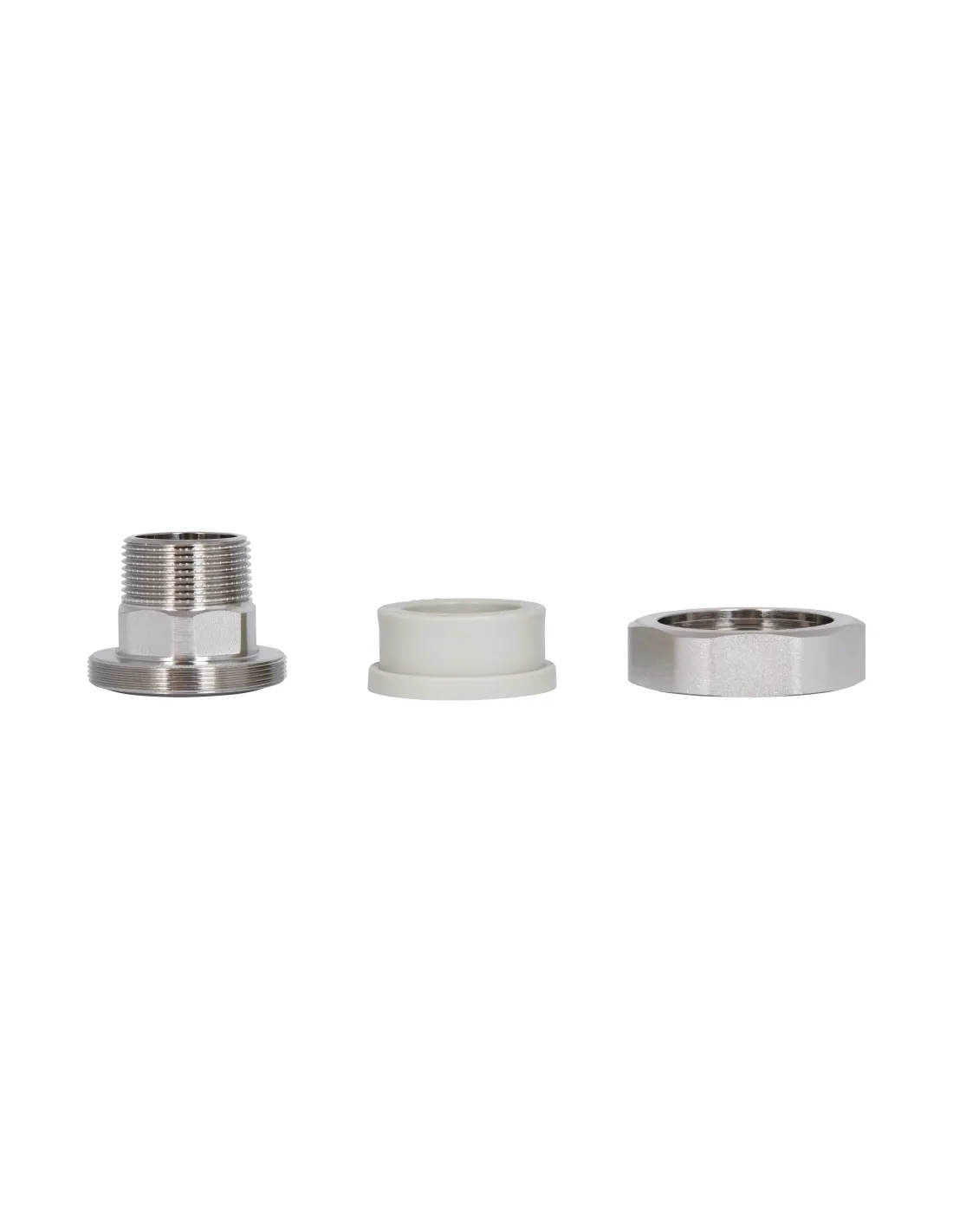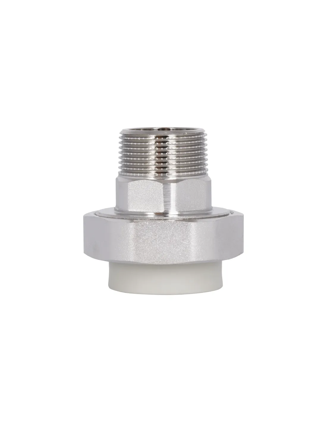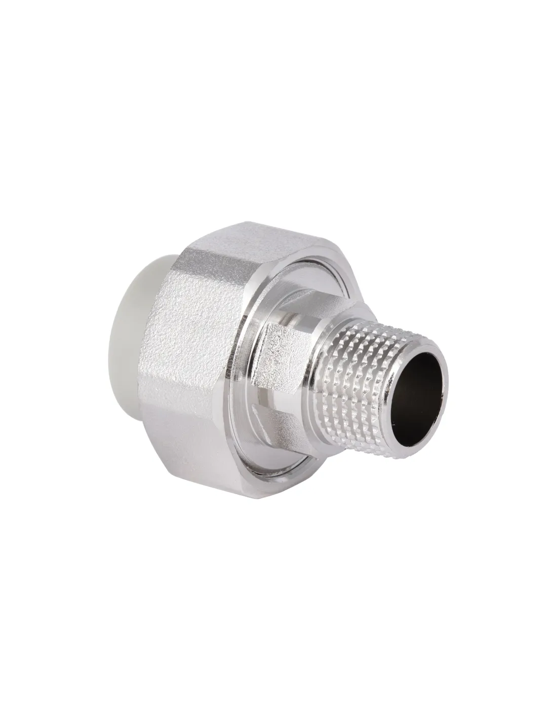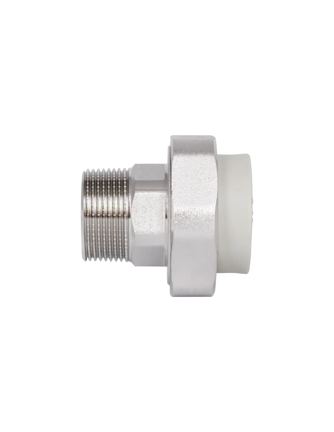 Конструкция фитинга состоит из PPR корпуса для сварки и латунного резьбового элемента с накидной гайкой. Латунный узел гарантирует высокую прочность, герметичность и коррозионную стойкость резьбового соединения. Сгон подходит для использования в системах холодного и горячего водоснабжения, а также в отоплении при рабочем давлении до 20 бар.