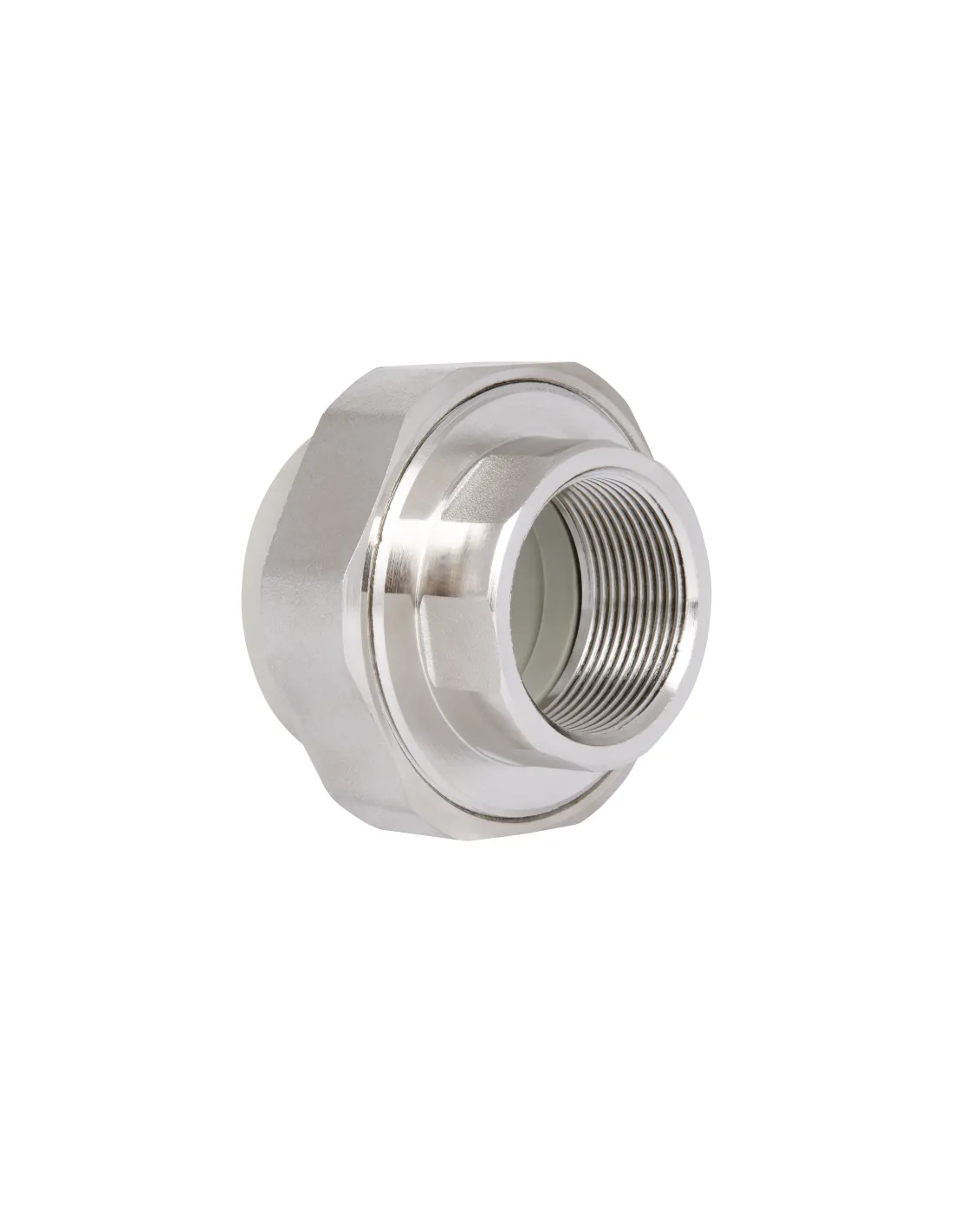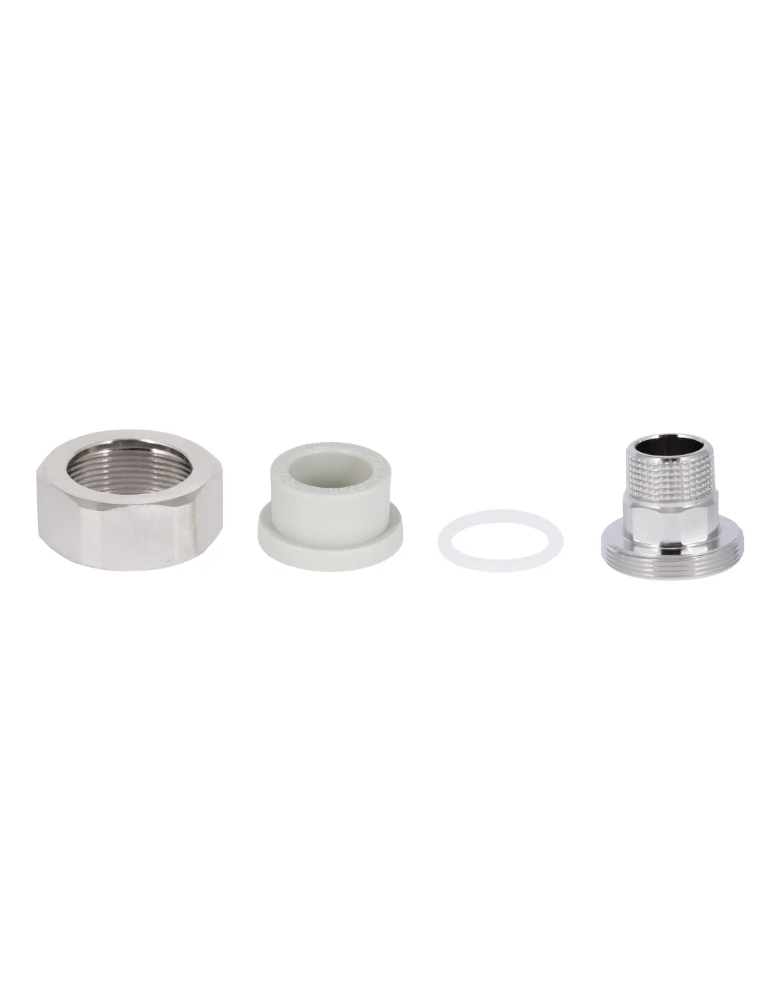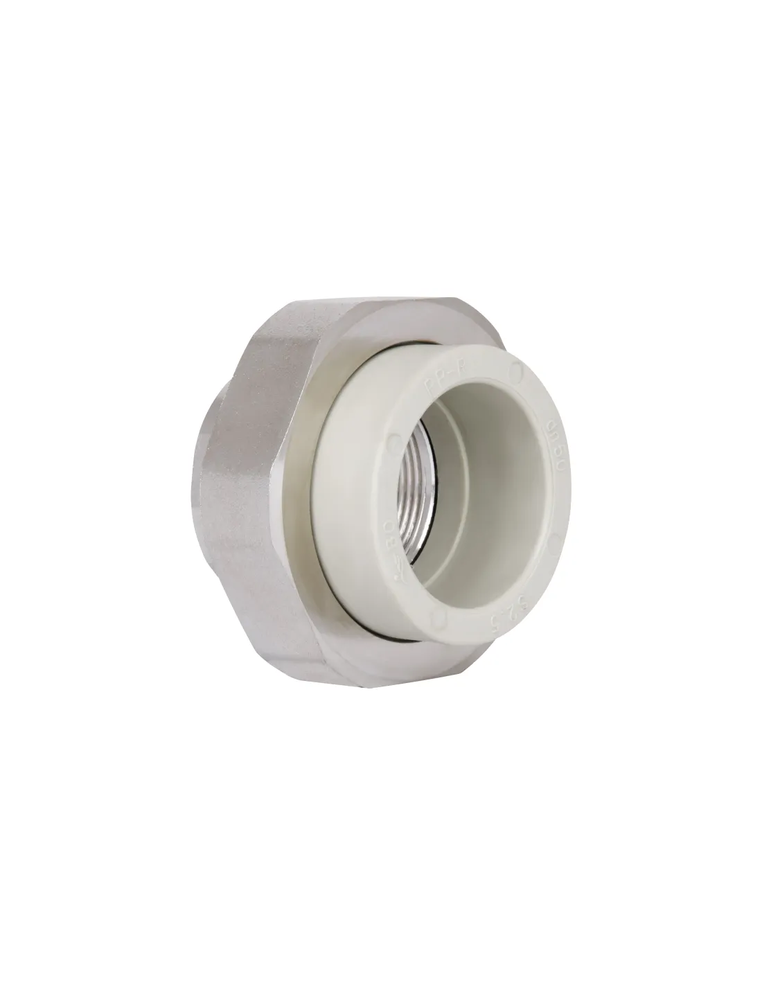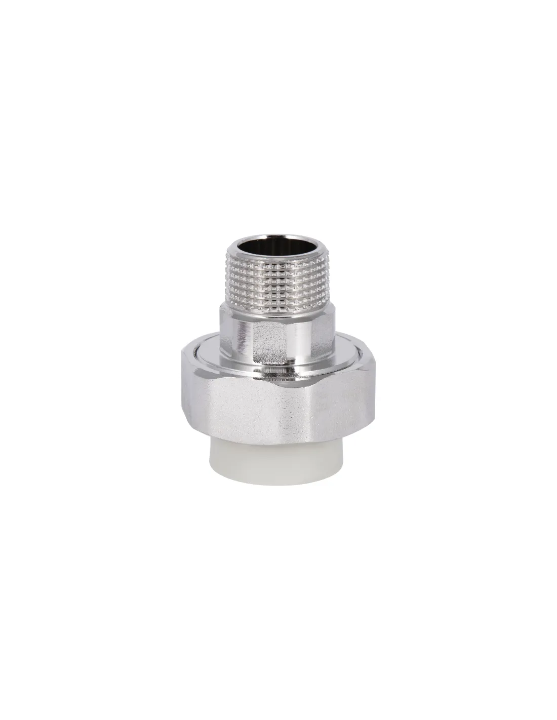 Фитинг выполнен из прочного PPR, устойчивого к высоким температурам и давлению до 20 бар. Резьбовая часть из латуни с накидной гайкой обеспечивает герметичность и надежность соединения, а также защищает от коррозии. Соединение с трубой происходит посредством термической сварки, создавая неразъемное основание.