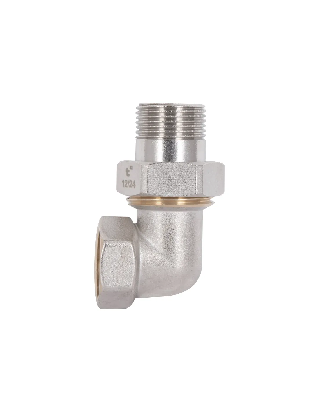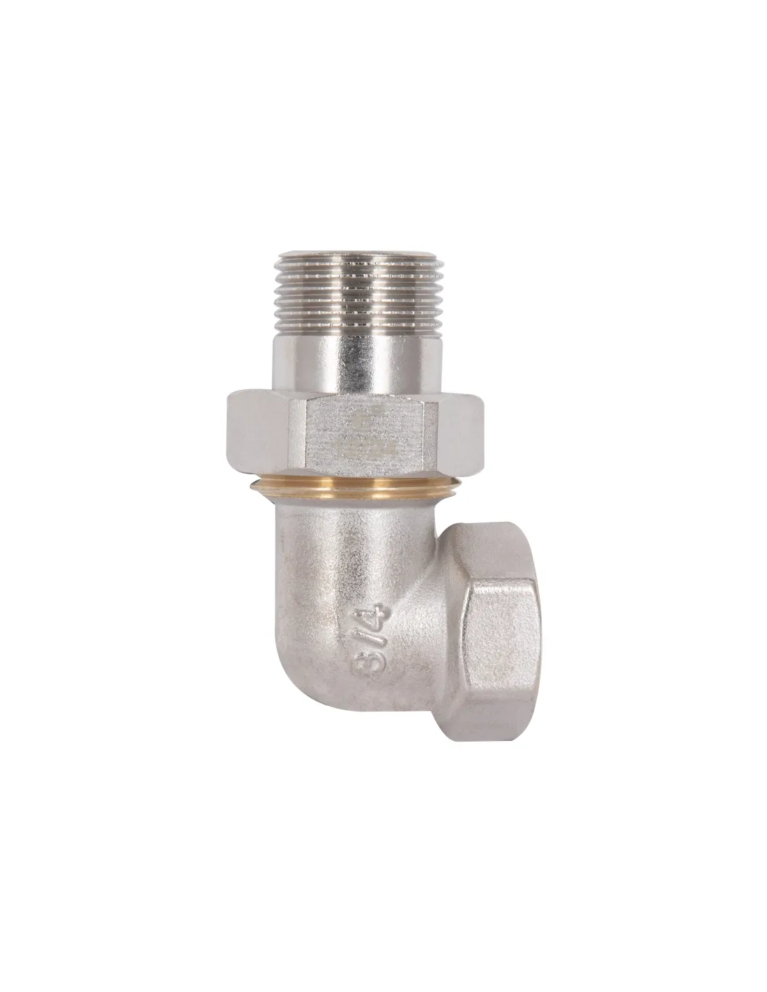 Сгон-американка угловой Thermo Alliance Standart TAS191W20 – изготовлен из латуни с никелированным покрытием, является надёжным и современным соединением для быстрой и удобной стыковки между собой неподвижных участков трубопровода, имеющих внутреннюю или наружную резьбу.
