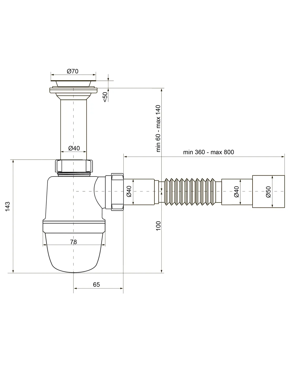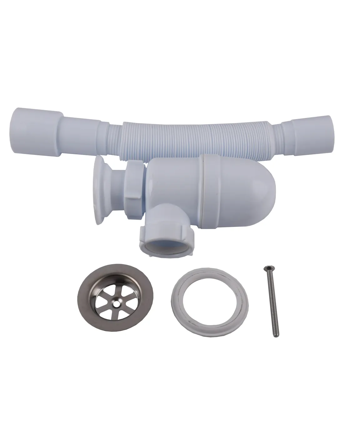 Сифон для умывальника и мойки Optimum OOPTI-11043 1 1/2 дюйма х 40 с литым выпуском и гофротрубой 40х40/50 – классическая модель для надежного водоотведения. Литой выпуск исключает возможность протечек в месте соединения с чашей, обеспечивая монолитность конструкции.