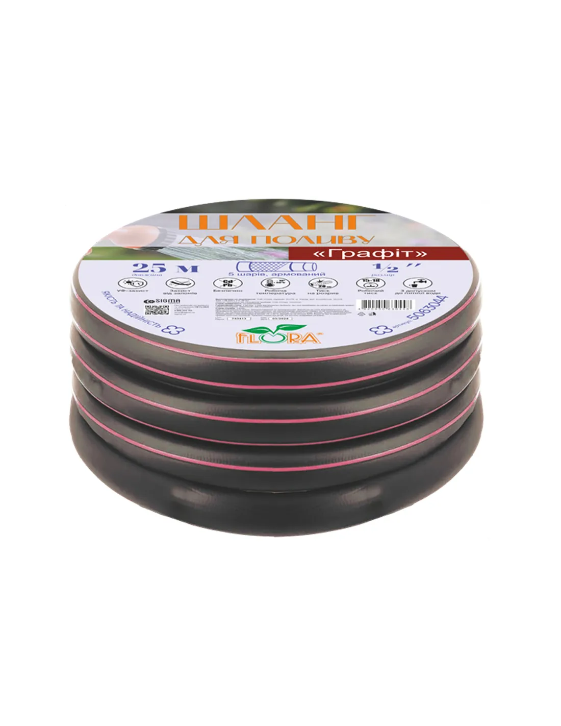 Шланг для полива Flora Графит 1/2 дюйма, 50 метров, армированный