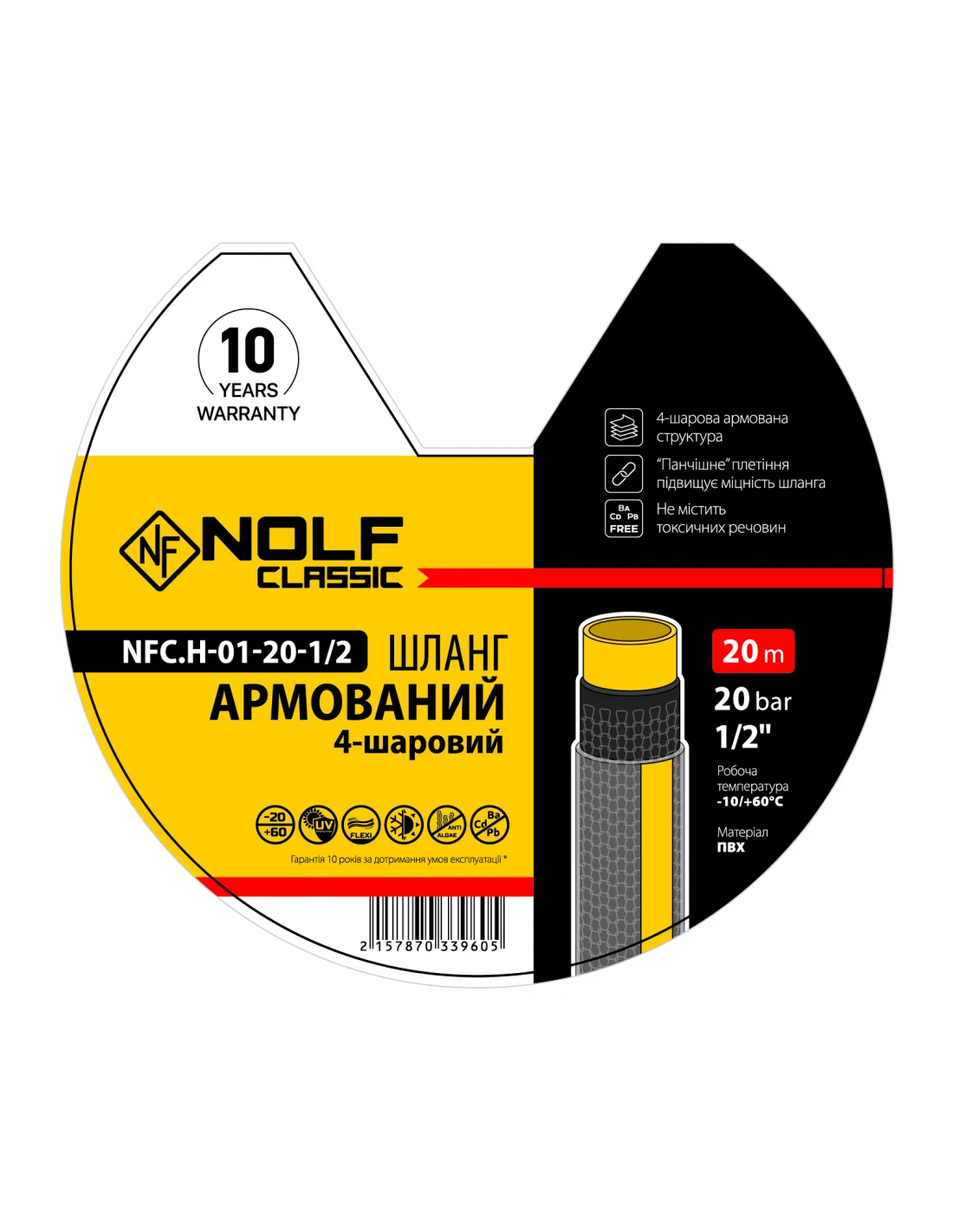Шланг для полива Nolf classic NFC.H-01-20-1/2 1/2 дюйма, 20 метров, армированный