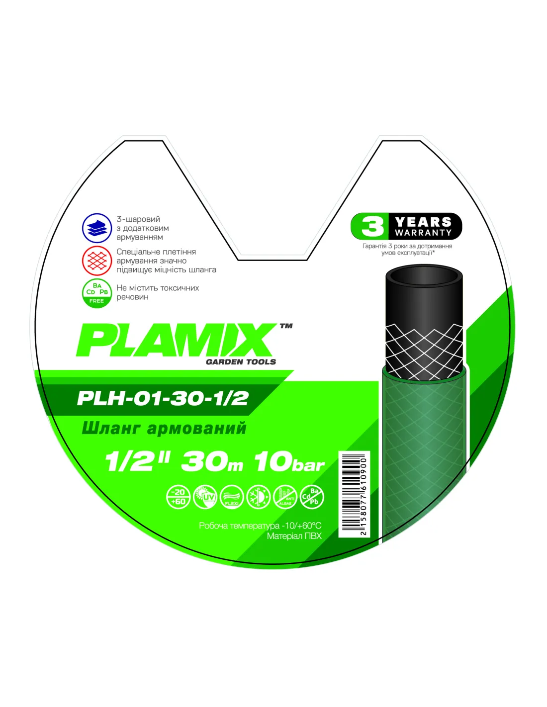 Шланг для полива Plamix PLH-01-30-1/2 1/2 дюйма, 30 метров, армированный