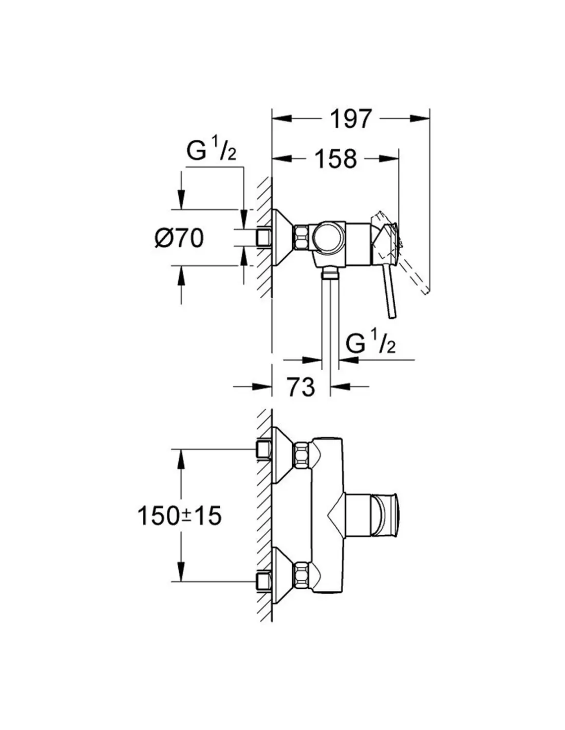 Технические характеристики смесителя для душа Grohe BauClassic 32867000: