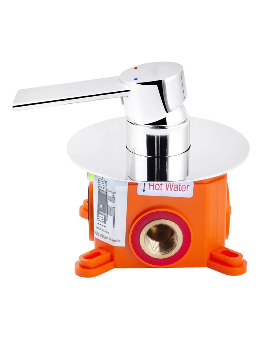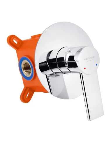 Смеситель для душа скрытого монтажа Kroner KRP Basis - C080 имеет 2 входа для подключения: первый вход – для подключения горячей воды, второй – для подключения холодной воды. Управление регулировкой горячей и холодной воды осуществляется при помощи рычага, при повороте которым можно задать заданную температуру.