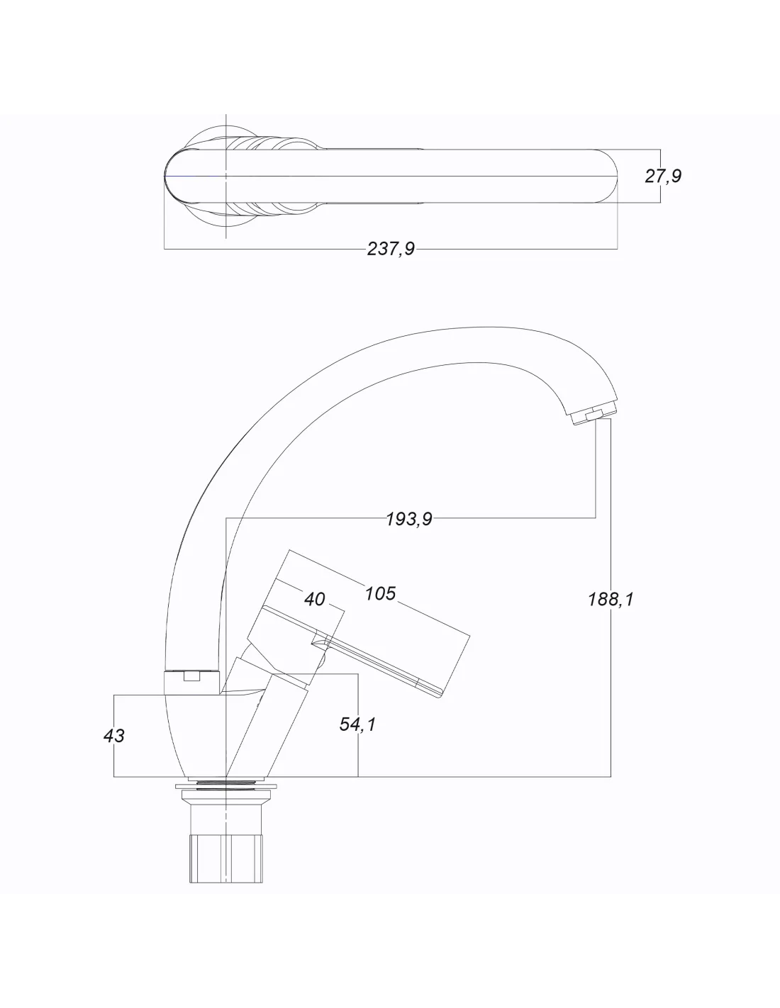 - Длина излива: 193 мм,