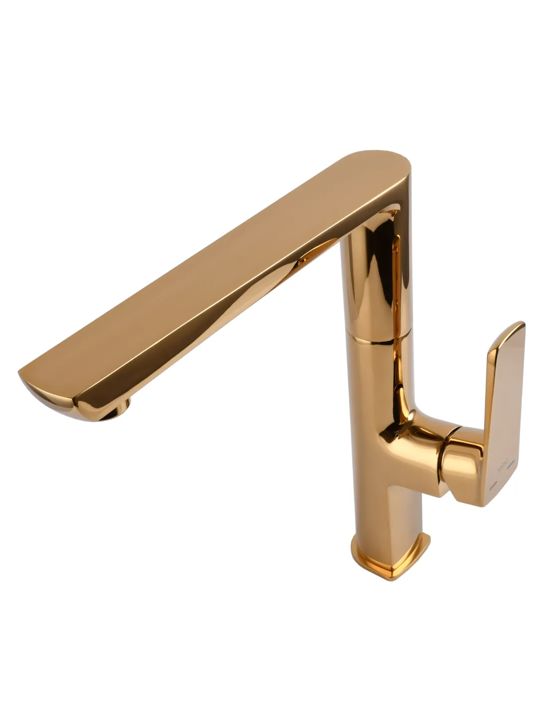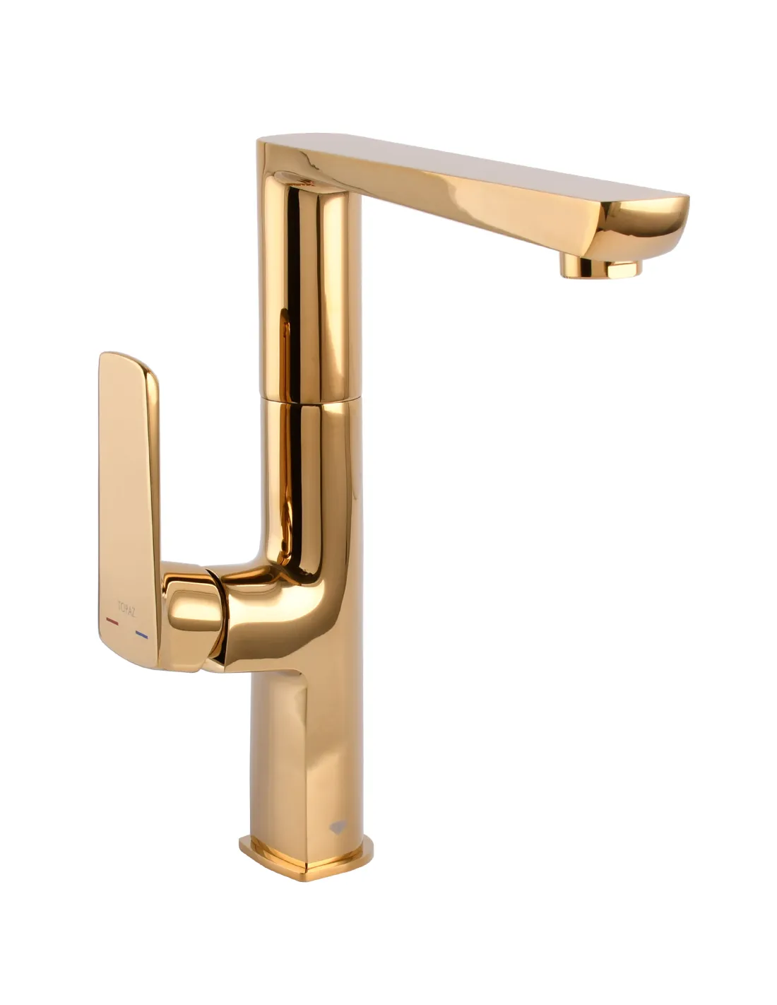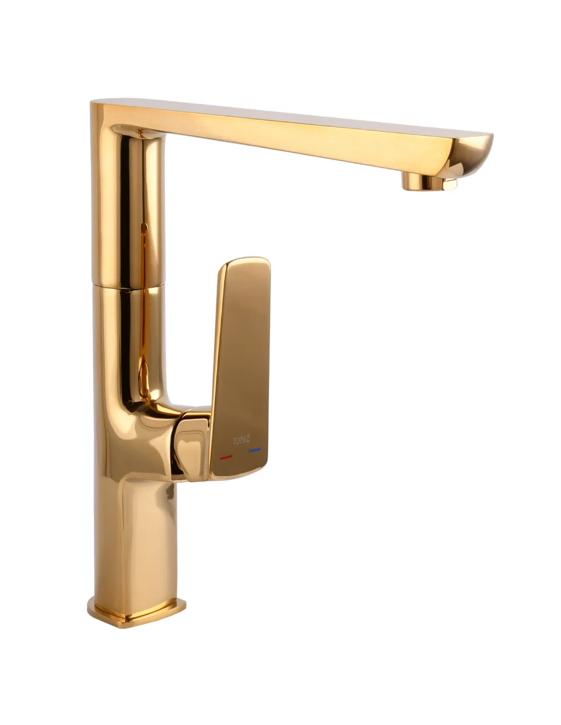 Смеситель для кухни Topaz Lexi TL-21401-H57-AU - предназначен для смешивания горячей и холодной воды. Используется на кухне. Устанавливается на кухонную мойку или на столешницу. Материал изделия крана - латунь. Изготовлен в современном стиле, в цвете золото с глянцевой поверхностью. Монтаж смесителя - врезной, при помощи зажимной гайки. Тип подключения к водопроводу - гибкие подводимые шланги. Гарантия: 12 месяцев. Страна-производитель: Польша.