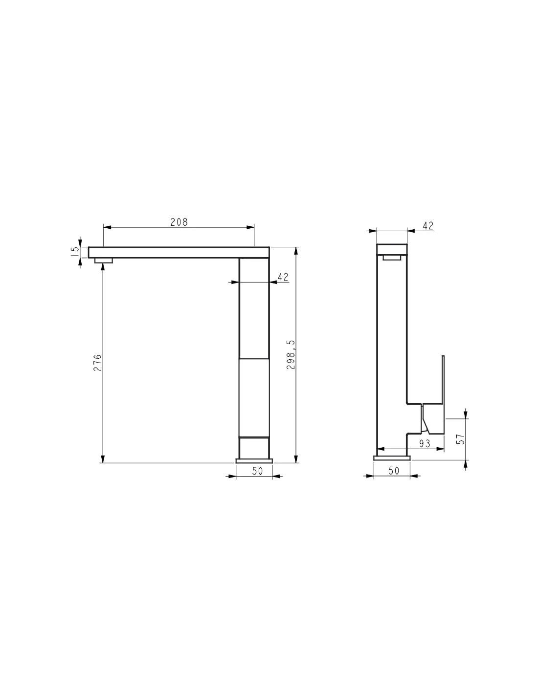 - Длина излива: 208 мм,