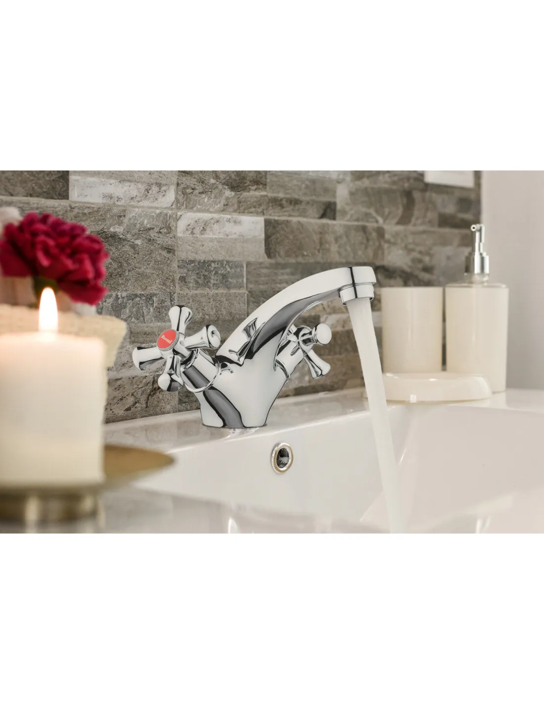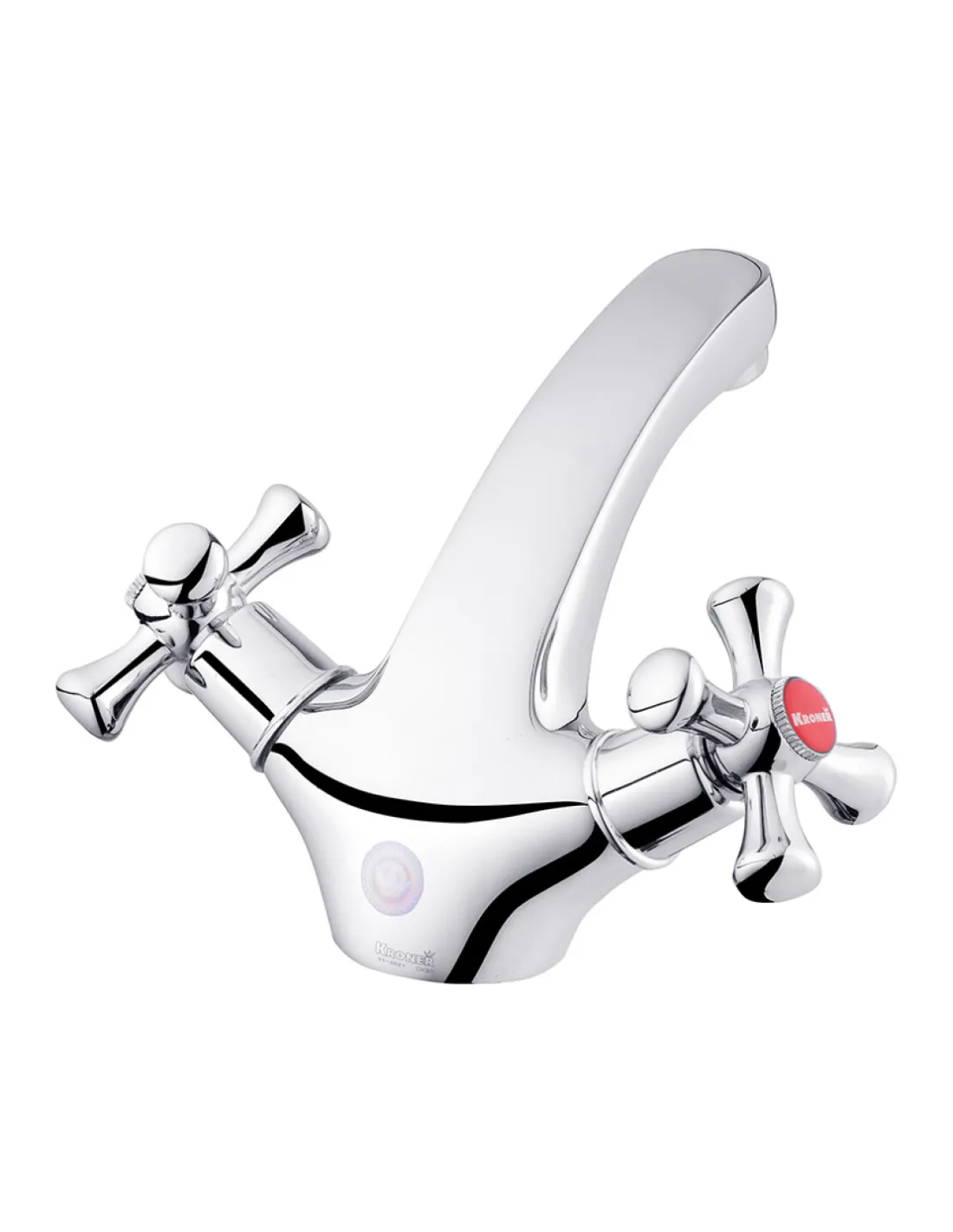 Смеситель для раковины двухвентильный Kroner KRM Rhein - C010 - это сочетание удобства, надежности и конечно простоты при использовании в ванной комнате. Предназначен кран для смешивания горячей и холодной воды при помощи двух вентилей и встроенных в них кран букс и подачу ее под выбранным напором на умывальник. Используется в ванной комнате на умывальнике или раковине.