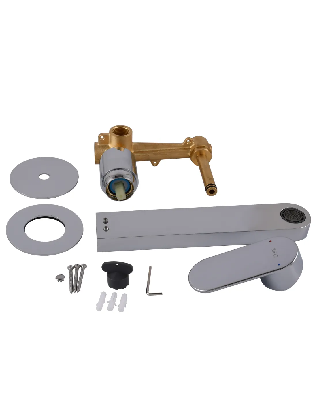 Смеситель для умывальника Topaz Barts - это сочетание удобства, надежности и конечно простоты при использовании в ванной комнате. Предназначен кран для смешивания горячей и холодной воды при помощи встроенного картриджа в рукоятку и подачу под выбранным напором на умывальник. Используется в ванной комнате на умывальнике или раковине, где сам смеситель монтируется за стеной - скрытый монтаж.