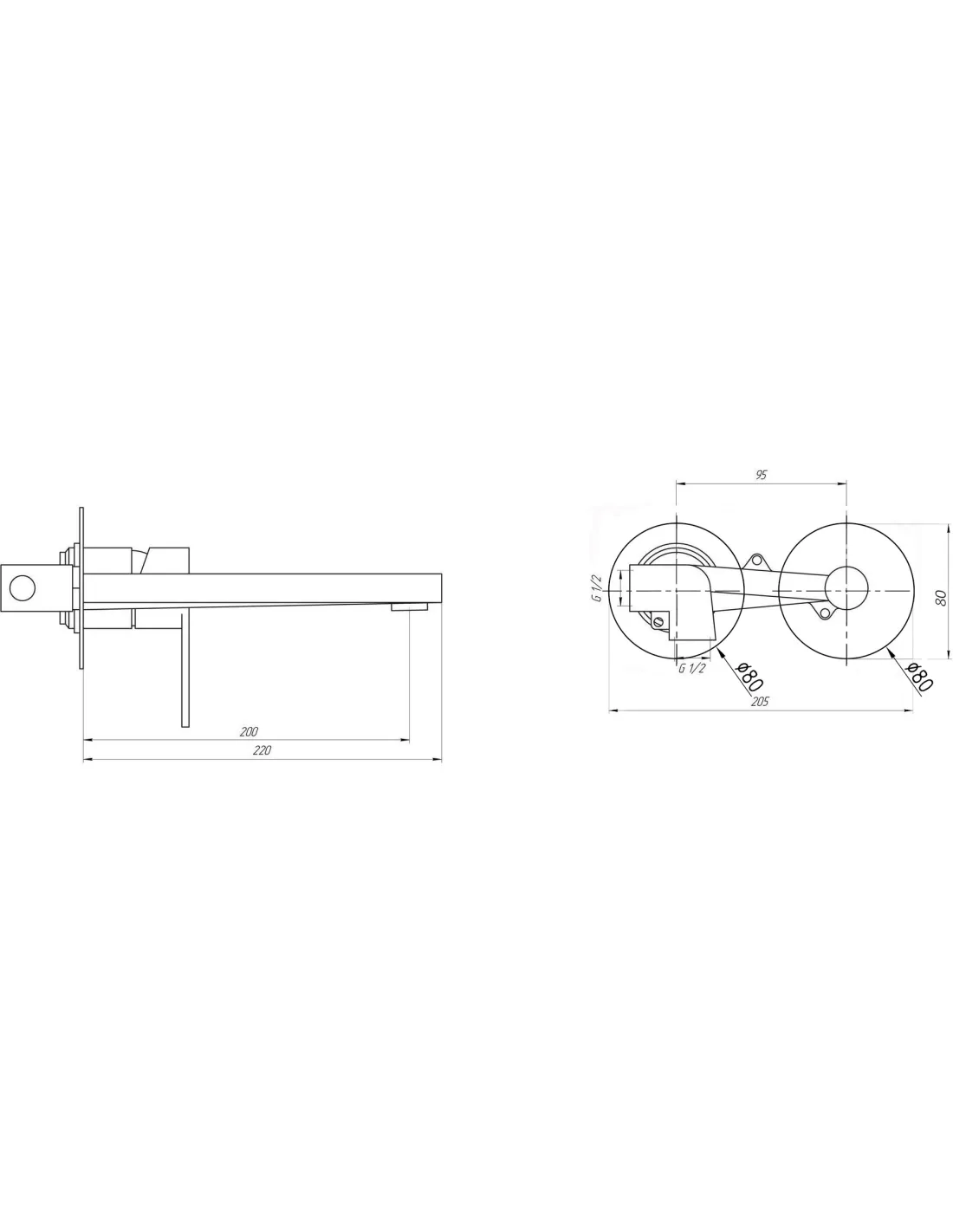 - Длина излива: 200 мм,