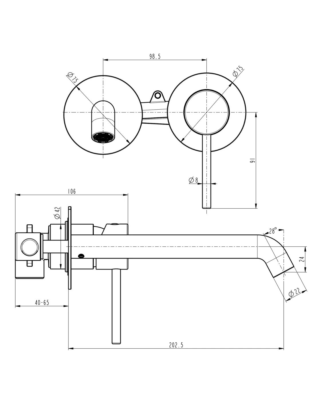 - Длина излива: 202 мм,