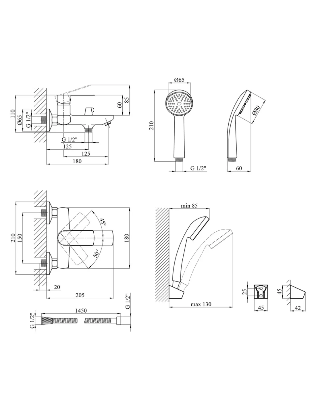Комплектация смесителя для ванны Kroner KRM Main - C060: