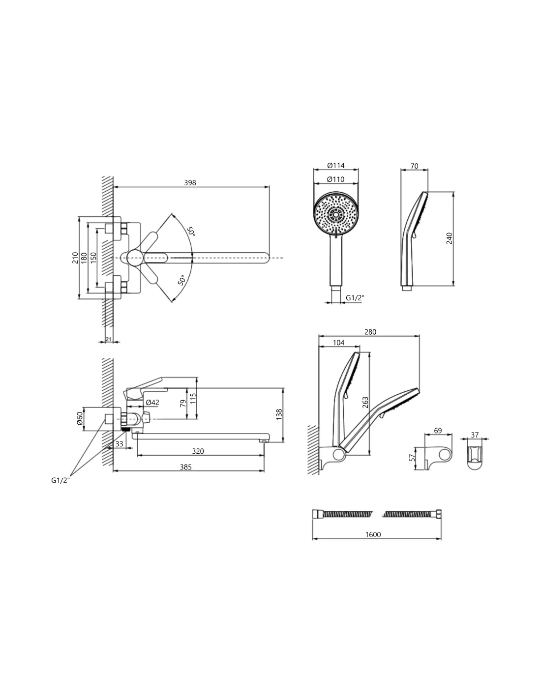 - Шланг душевой 1.5 метра,