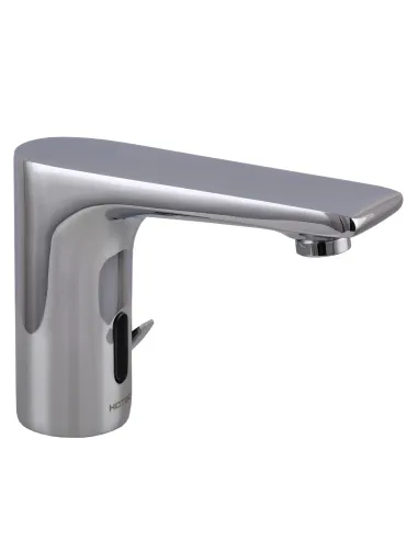 Смеситель сенсорный для умывальника Hotec 19.117 DC/AC имеет 2 входа для подключения: первый вход – для подключения горячей воды, второй – для подключения холодной воды. Смешивание горячей и холодной воды происходит за счет стандартного керамического картриджа, при повороте рукоятки и настройки комфортной температуры воды и нужного напора.