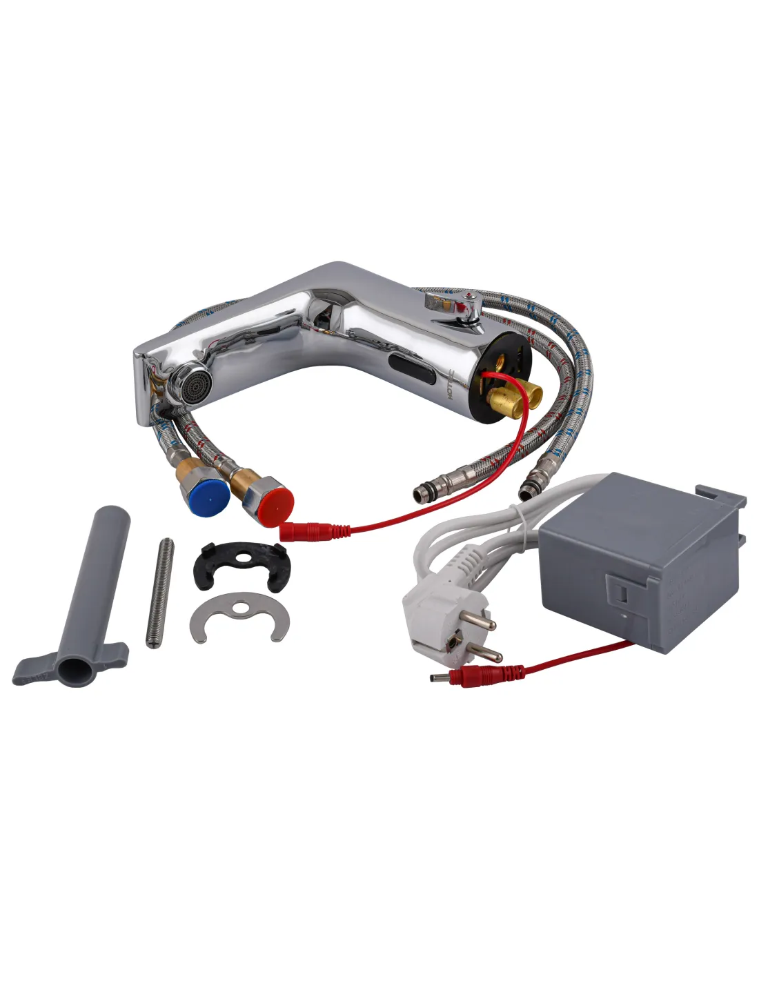 Комплектация смесителя сенсорного для умывальника Hotec 19.117 DC/AC: