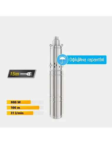 Шнековый насос для скважин Tekk Haus 3QGD 1,9/10 0.8 кВт предназначен для подъема воды из скважины или колодца с высотой всасывания больше 8 метров и диаметров от 76 мм. Используется данный насос для обеспечения водой дома, дачи, квартиры, а также для полива небольших земельных участков. Мощность двигателя 0,8 кВт. Материал изделия насоса - нержавеющая сталь, рабочее колесо является шнеком. Максимальная производительность насоса 32 литра в минуту. Максимальный напор воды достигает 100 метров / 10 bar. Диаметр насоса - 3 дюйма (76 мм). Диаметр подключения скважинного насоса 1 дюйм. Длина кабеля - 15 метров. Максимальная температура жидкости: 35 градусов по Цельсию. Вес насоса – 10,3 кг. Гарантия 2 года. Страна производитель - Китай.