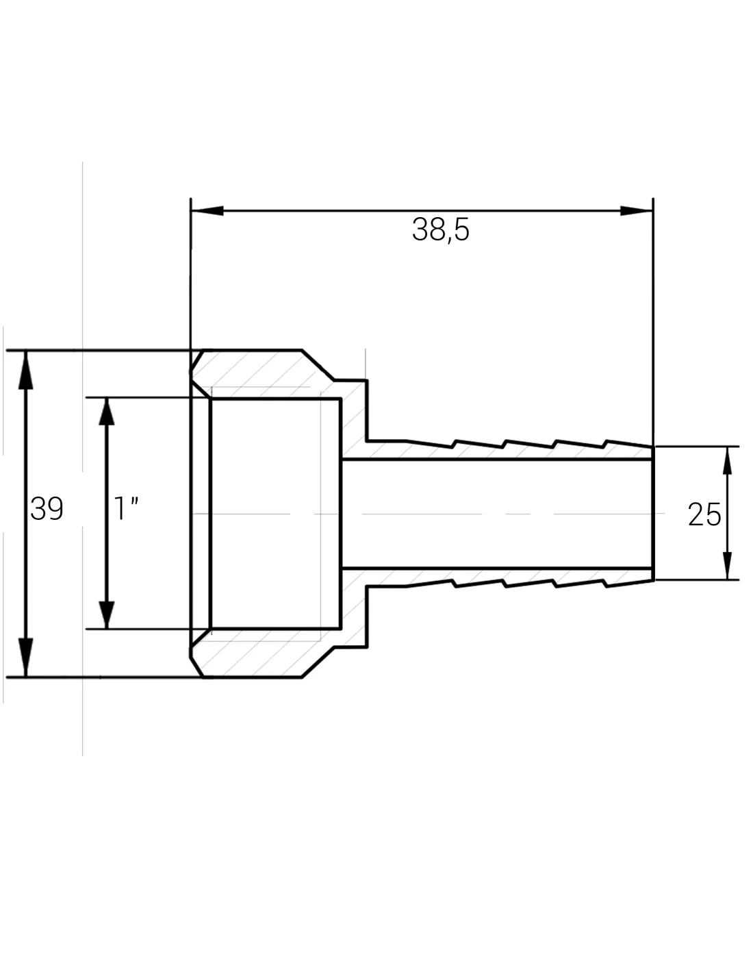 Характеристики Штуцер Optimum NU5L1S 1 дюйма В 25 мм: