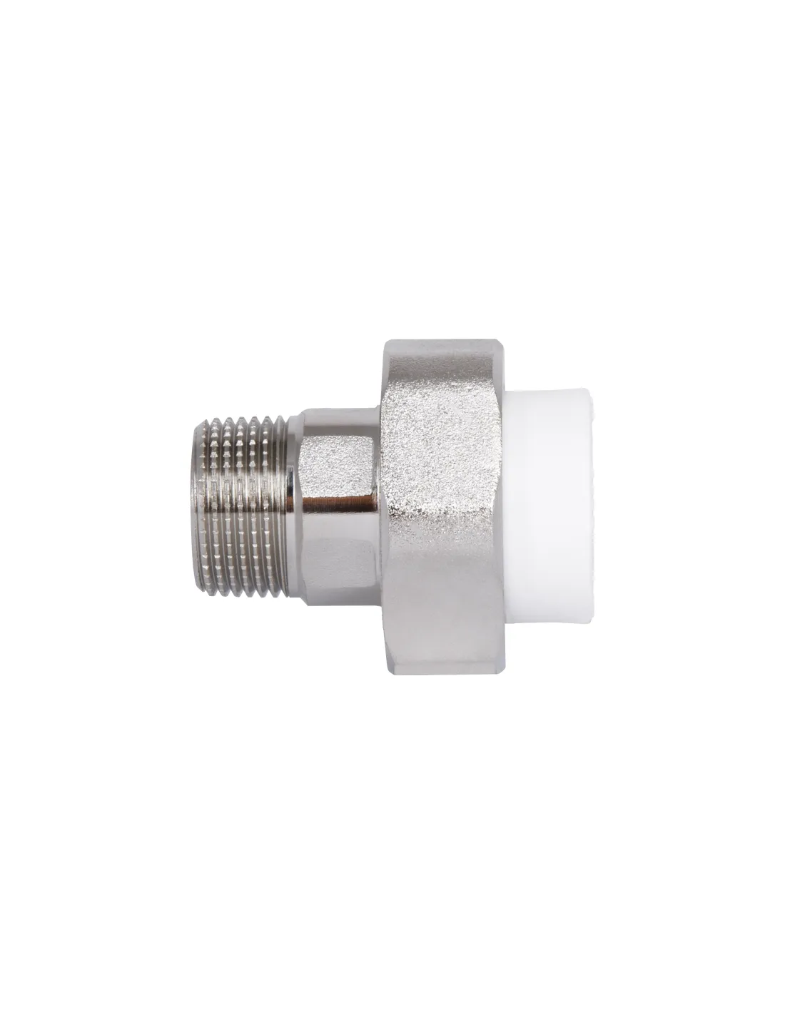 Корпус фитинга выполнен из высококачественного полипропилена (PPR PN20), а резьбовая вставка из латуни с наружной резьбой 3/4 дюйма надежно зафиксирована. Фитинг выдерживает максимальное рабочее давление 20 бар и подходит для использования в системах холодного и горячего водоснабжения, а также в отоплении.