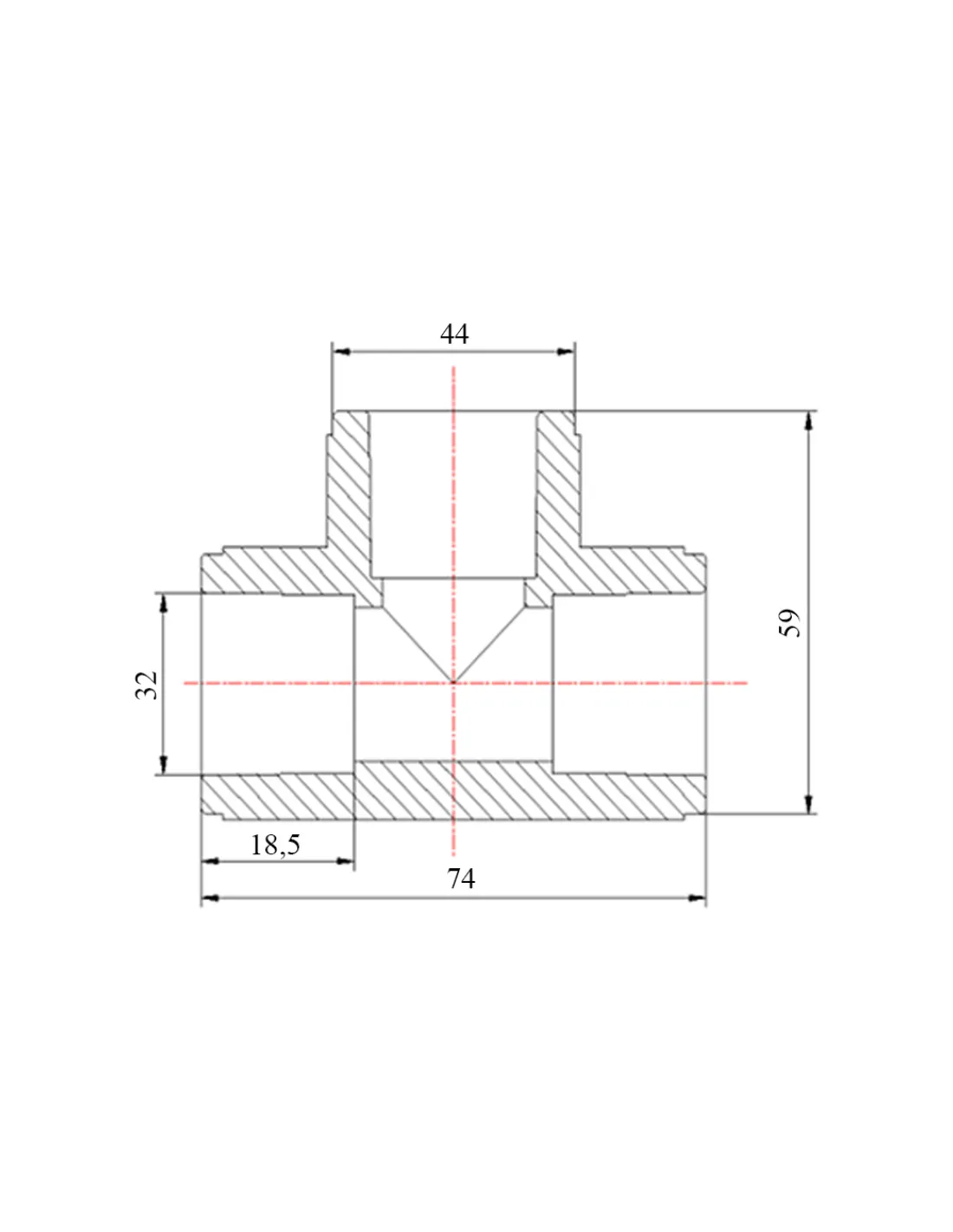 - Тип: равнопроходной тройник;