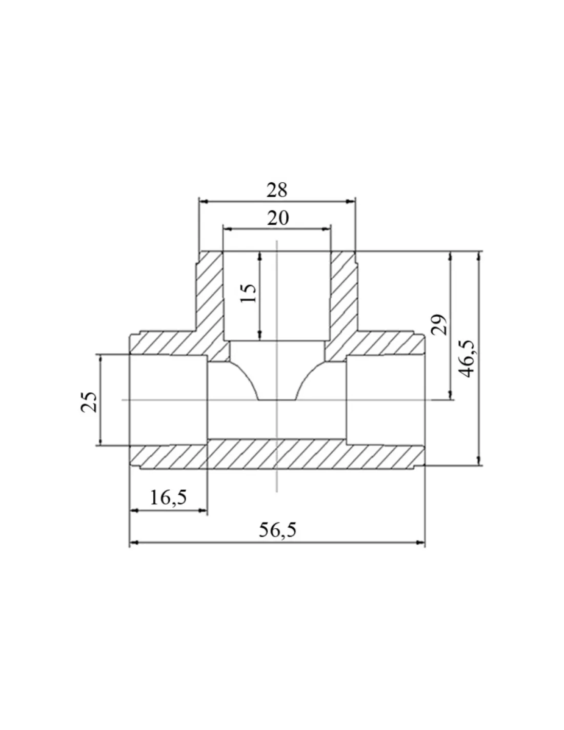 Тройник редукционный Blue Ocean 25х20х25 белого цвета предназначен для неразъемного создания ответвления меньшего диаметра 20 мм от основной полипропиленовой трубы диаметром 25 мм, с сохранением основного диаметра на проходном канале. Этот фитинг используется для перехода на меньший диаметр, что часто требуется при разводке к конечным потребителям от магистрали или стояка, а белый цвет обеспечивает чистоту линий.