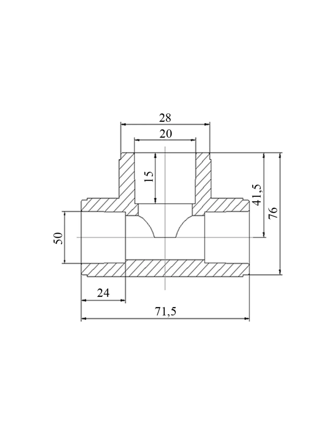 Технические характеристики тройника редукционного Blue Ocean 50х20х50: