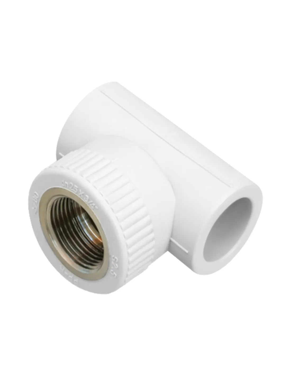 Тройник ВР Blue Ocean 20х1/2х20 белого цвета предназначен для неразъемного создания ответвления с внутренней латунной резьбой 1/2 дюйма от полипропиленовой трубы диаметром 20 мм. Этот комбинированный фитинг используется для подключения сантехнического оборудования, смесителей или приборов учета воды, где требуется переход с PPR на металл, с сохранением эстетики белого цвета.