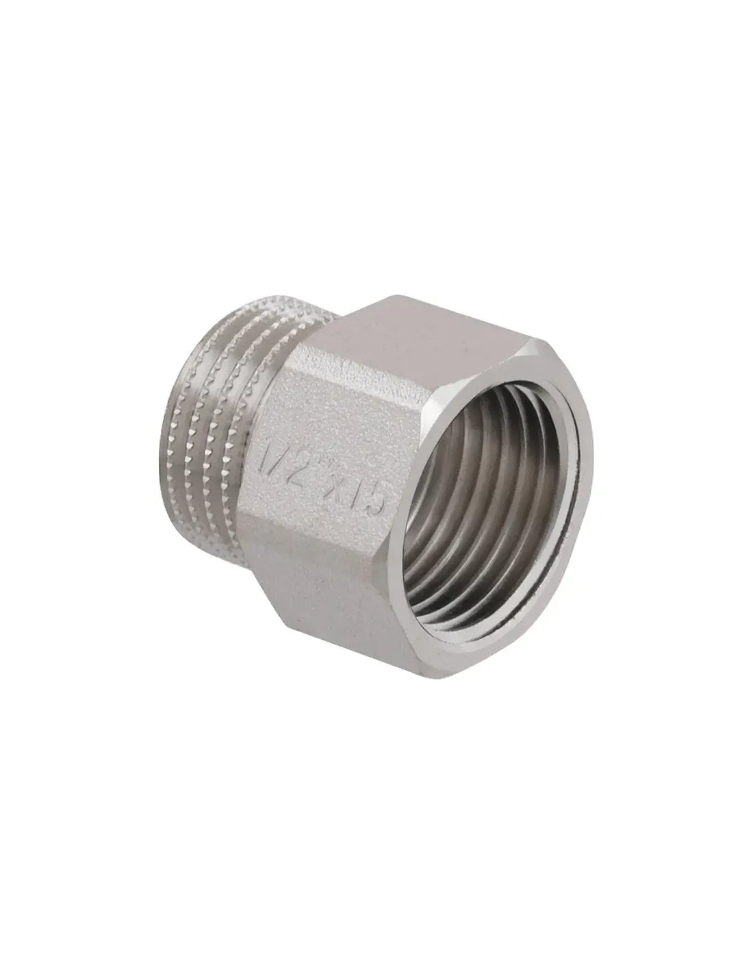 Удлинитель латунный Raftec PN40 1/2 дюйма, 15 мм изготовлен из высококачественной латуни с никелированным покрытием, является незаменимым в любых трубопроводных системах холодного и горячего водоснабжения для подсоединения труб и подключения дополнительных приборов.