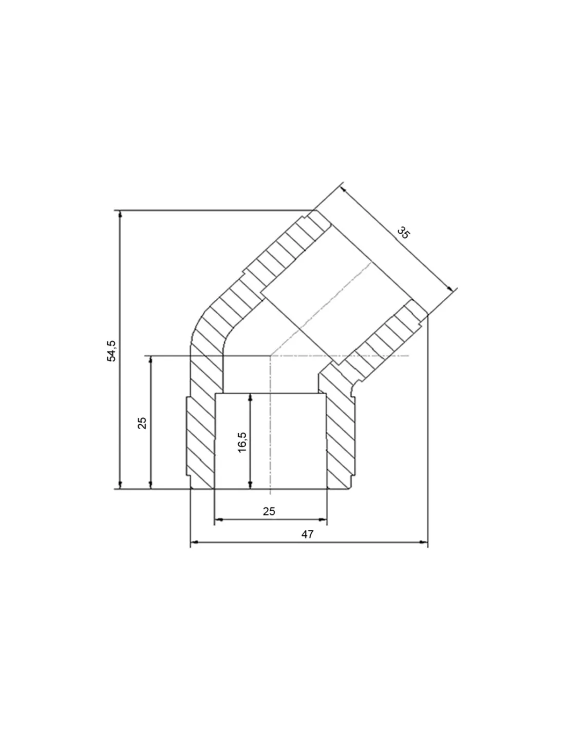 Технические характеристики уголка 45 Blue Ocean PPR 25 мм: