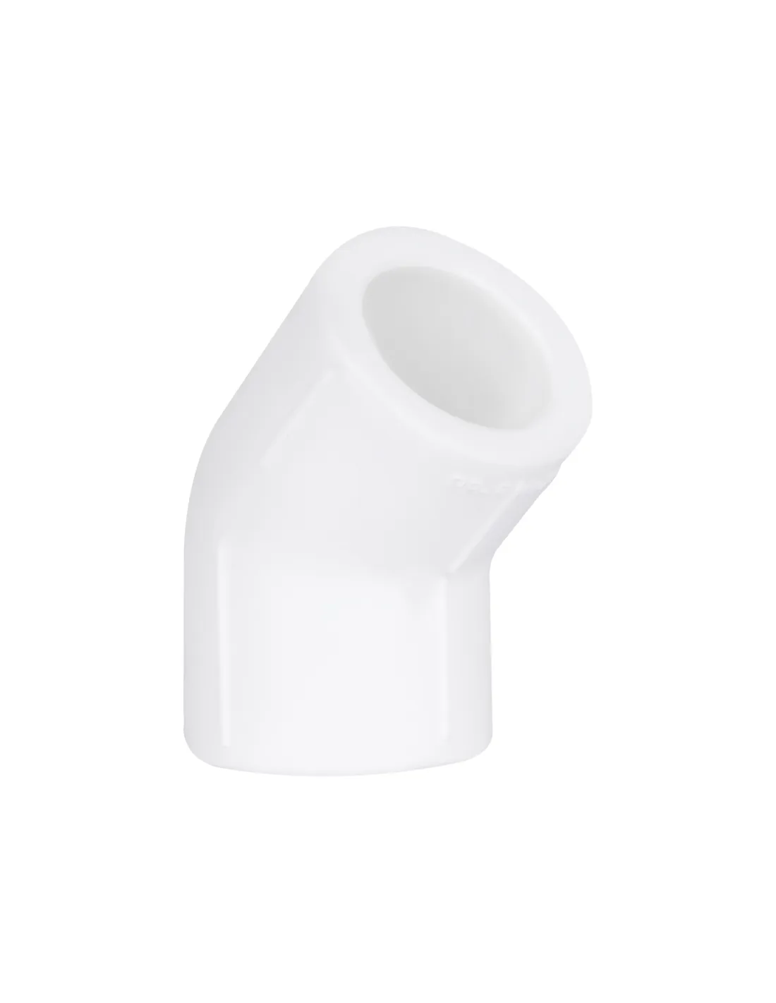 Уголок 45° Blue Ocean d20 белого цвета предназначен для неразъемного изменения направления полипропиленового трубопровода диаметром 20 мм на 45 градусов. Этот фитинг используется для создания плавных изгибов трассы в системах холодного и горячего водоснабжения, а также отопления. Плавный угол помогает минимизировать гидравлические потери и турбулентность потока, а белый цвет обеспечивает эстетичность при открытой прокладке.