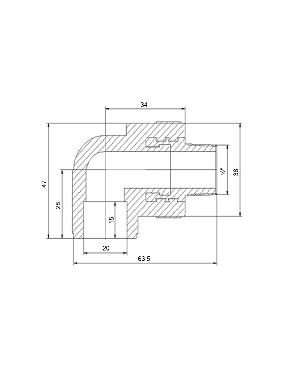 - Сочетает поворот на 90° и переход на наружную резьбу 1/2 дюйма;