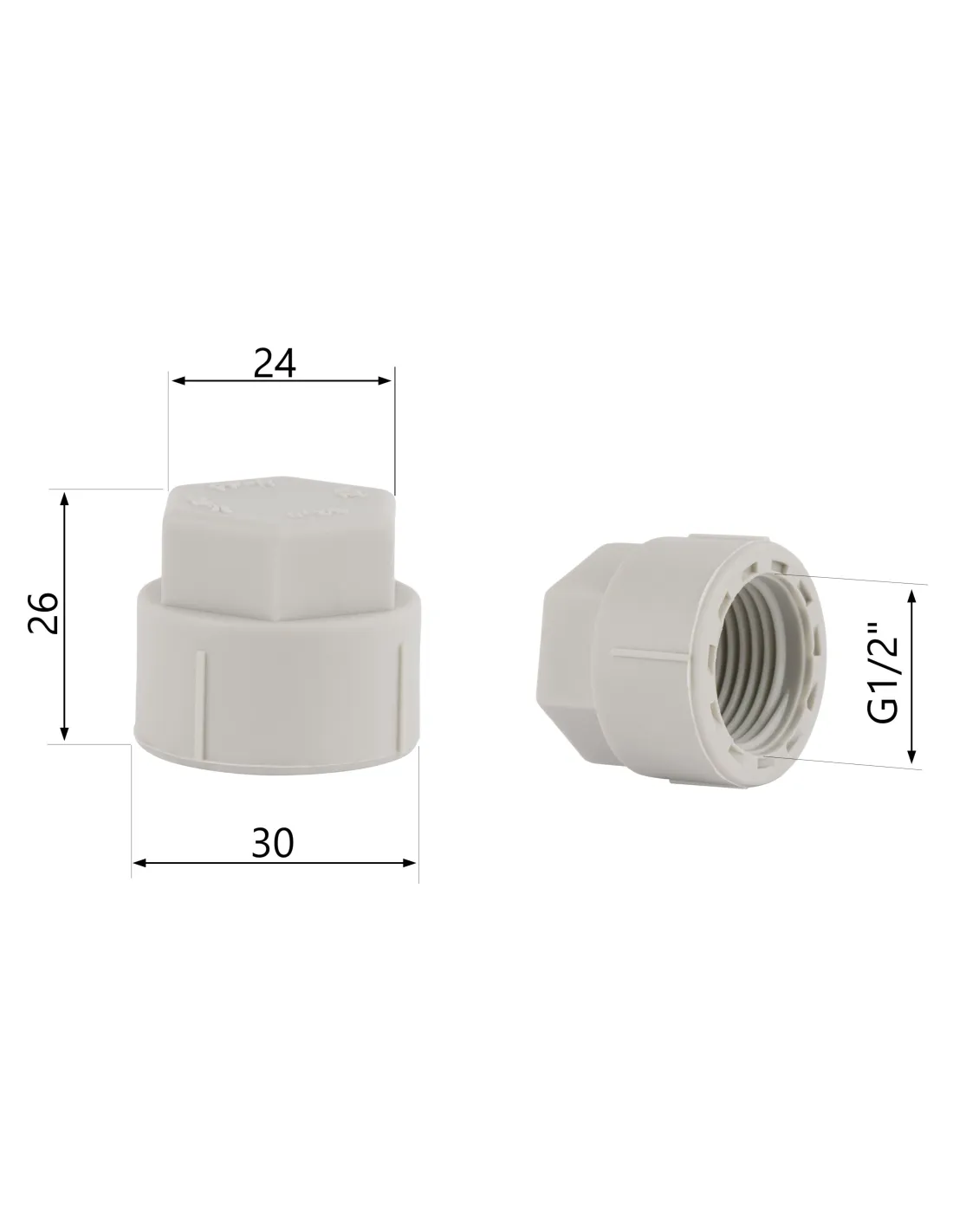 Заглушка с резьбой Blue Ocean 20х1/2 ВР предназначена для герметичного закрытия конца полипропиленовой трубы диаметром 20 мм с внутренней латунной резьбой 1/2 дюйма. Этот фитинг может использоваться для временного глушения трубопровода, обеспечивая возможность дальнейшего подключения резьбовых элементов, или для окончательной заглушки с сохранением резьбового вывода.