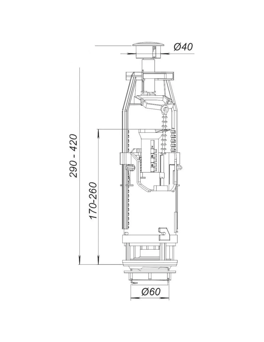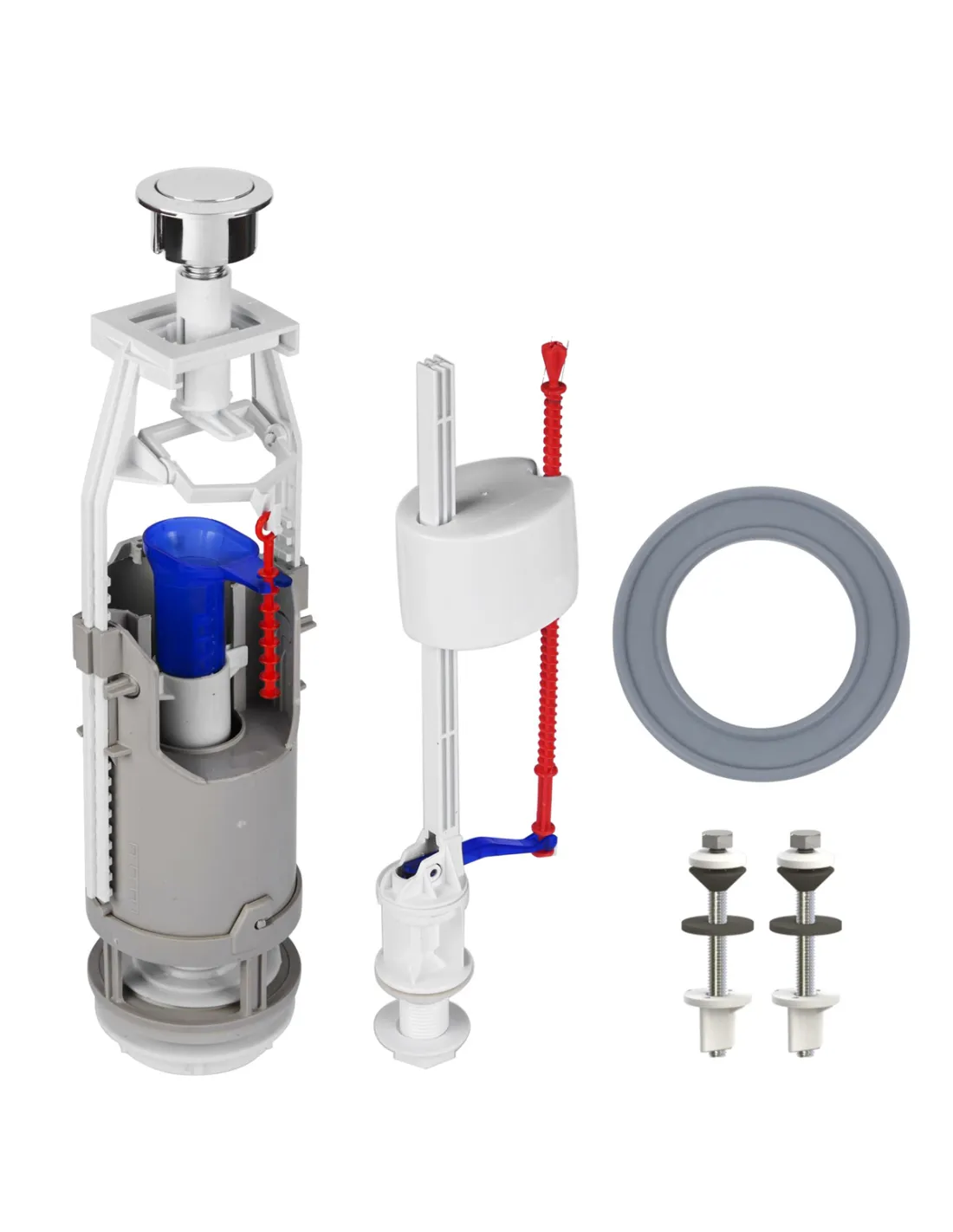 Запорная арматура на унитаз SoloPlast АБк-12 выполнена из качественного пластика белого цвета с хромированной круглой кнопкой для приведения спускного механизма в действие. Изделие устанавливается в сливной бачок унитаза.