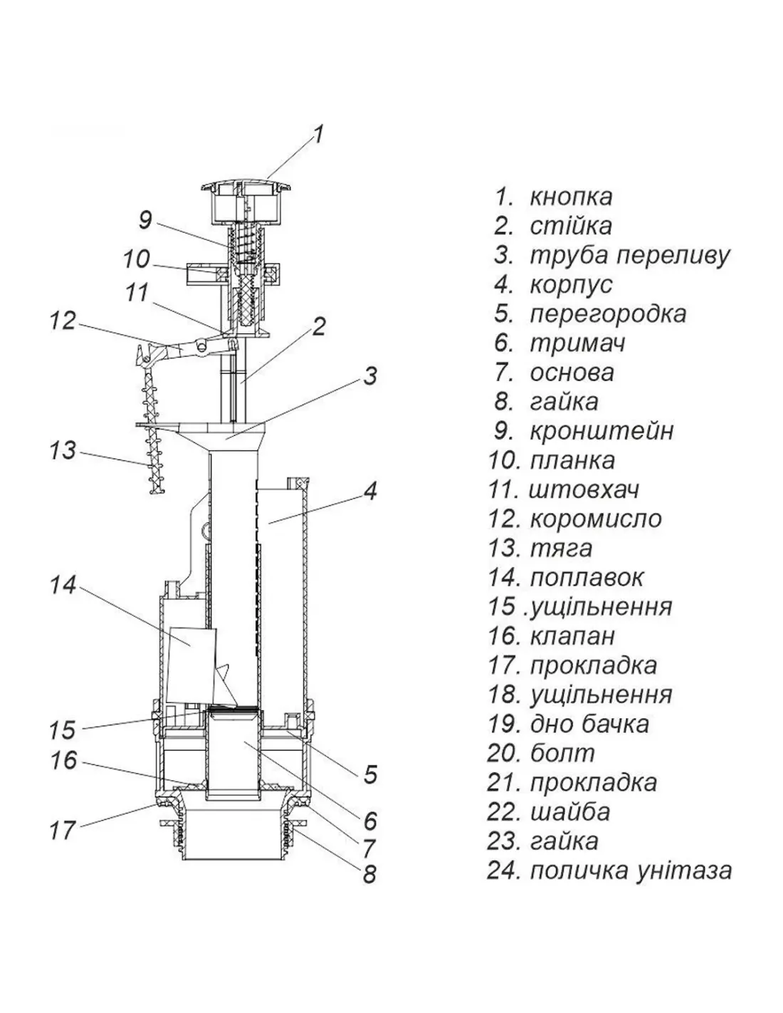 Запорная арматура на унитаз SoloPlast АБк-12 однокнопочный