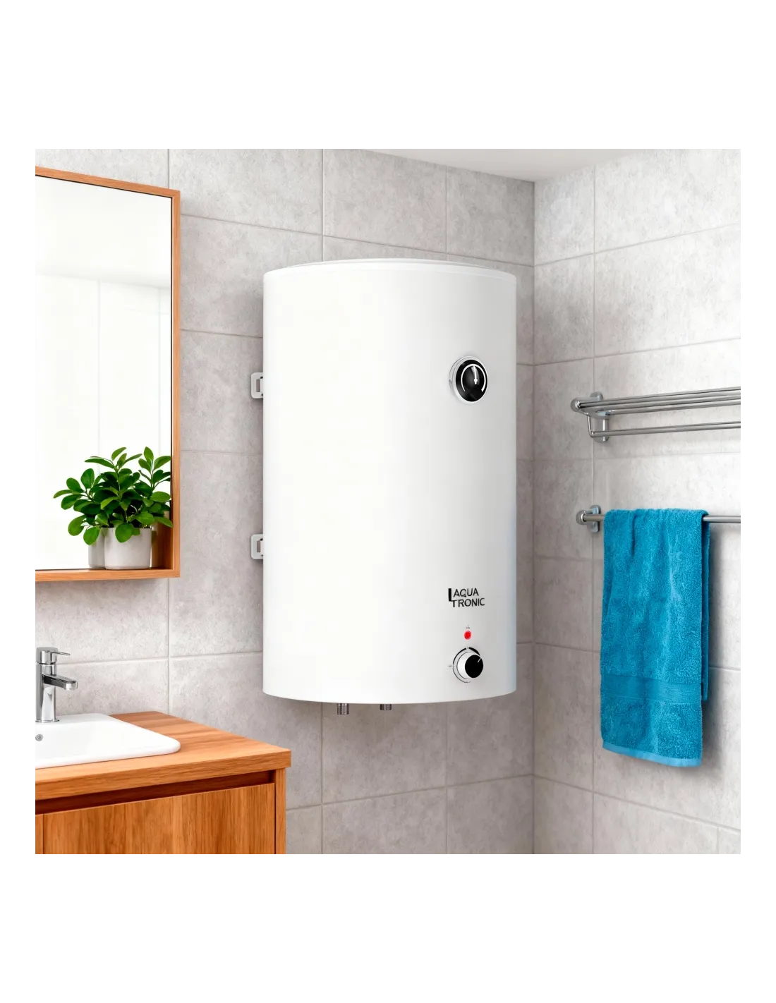 Бойлер Aquatronic Round D1004620 B4 - електричний накопичувальний бойлер настінного монтажу з 2 сухими ТЕНами. ТЕНи закритого типу (сухі) не контактують з водою, тому знижуються вимоги до жорсткості води, що дає змогу безпечно експлуатувати бойлер у регіонах із великим вмістом солей у воді. Внутрішній бак виготовлений із листової сталі товщиною 2 мм, із застосуванням удосконаленої технології трирівневого захисту від корозії. Застосування такої технології захисту у кілька разів збільшує термін служби бака:
