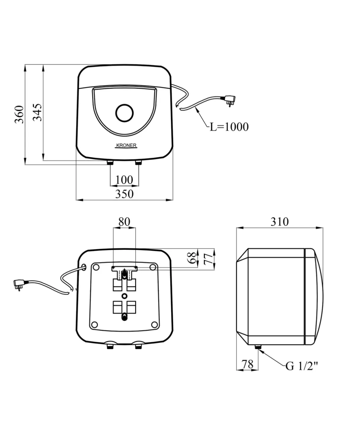 Бойлер для кухни Kroner Small K15SA1.5 15 литров устанавливается над мойкой. Водонагреватель имеет объем 15 литров и мощность ТЭНа 1.5 кВт, при использовании проточная вода успевает нагреваться, пока расходуется накопленный нагретый объем. Поэтому такие бойлеры часто называют проточными - когда необходимо быстро нагреть небольшое количество воды для своих нужд.
