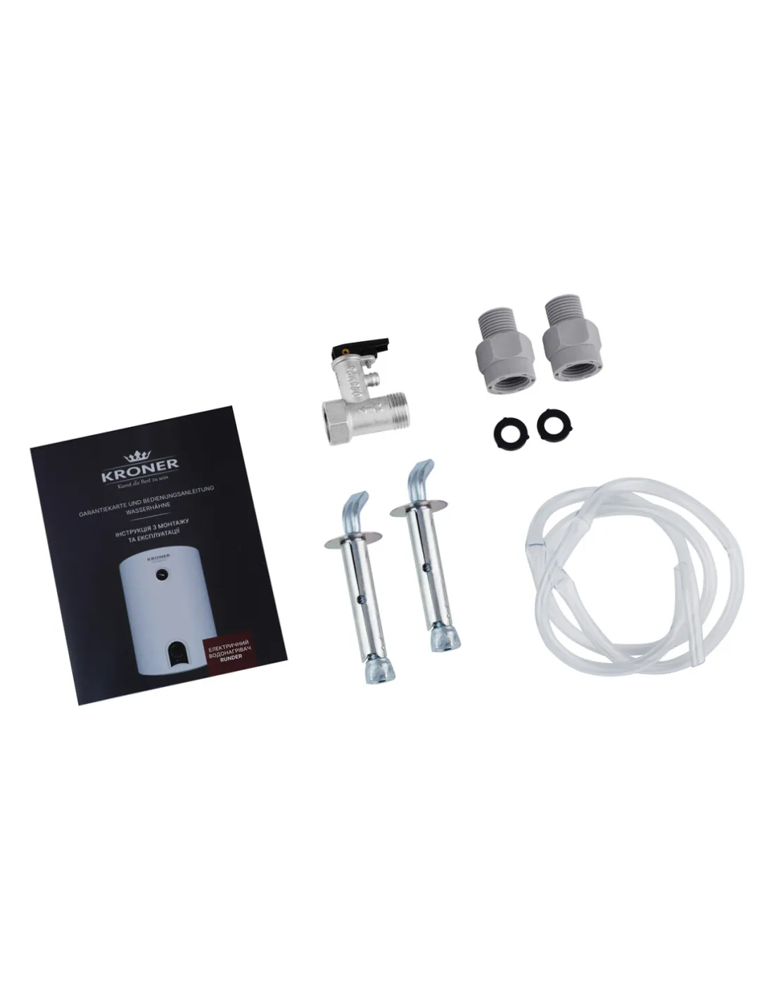 Бойлер Kroner Flacher K100F2-D - електричний накопичувальний бойлер настінного монтажу із сухим тіном. Тіні закритого типу (сухі) не контактують із водою, що знижує вимоги до жорсткості води та дозволяє безпечно експлуатувати бойлер у регіонах із високим вмістом солей. Внутрішній бак виготовлений із високоякісної сталі з багаторівневим захистом від корозії, що забезпечує довговічність та надійність експлуатації.