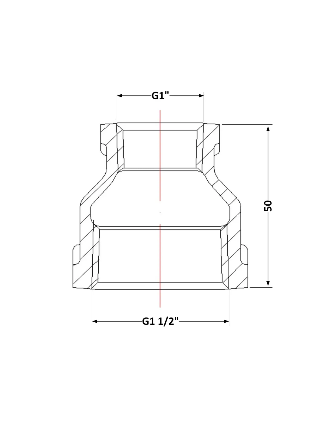Технічні характеристики чавунної муфти 1 1/2 х 1 дюйм ВР: