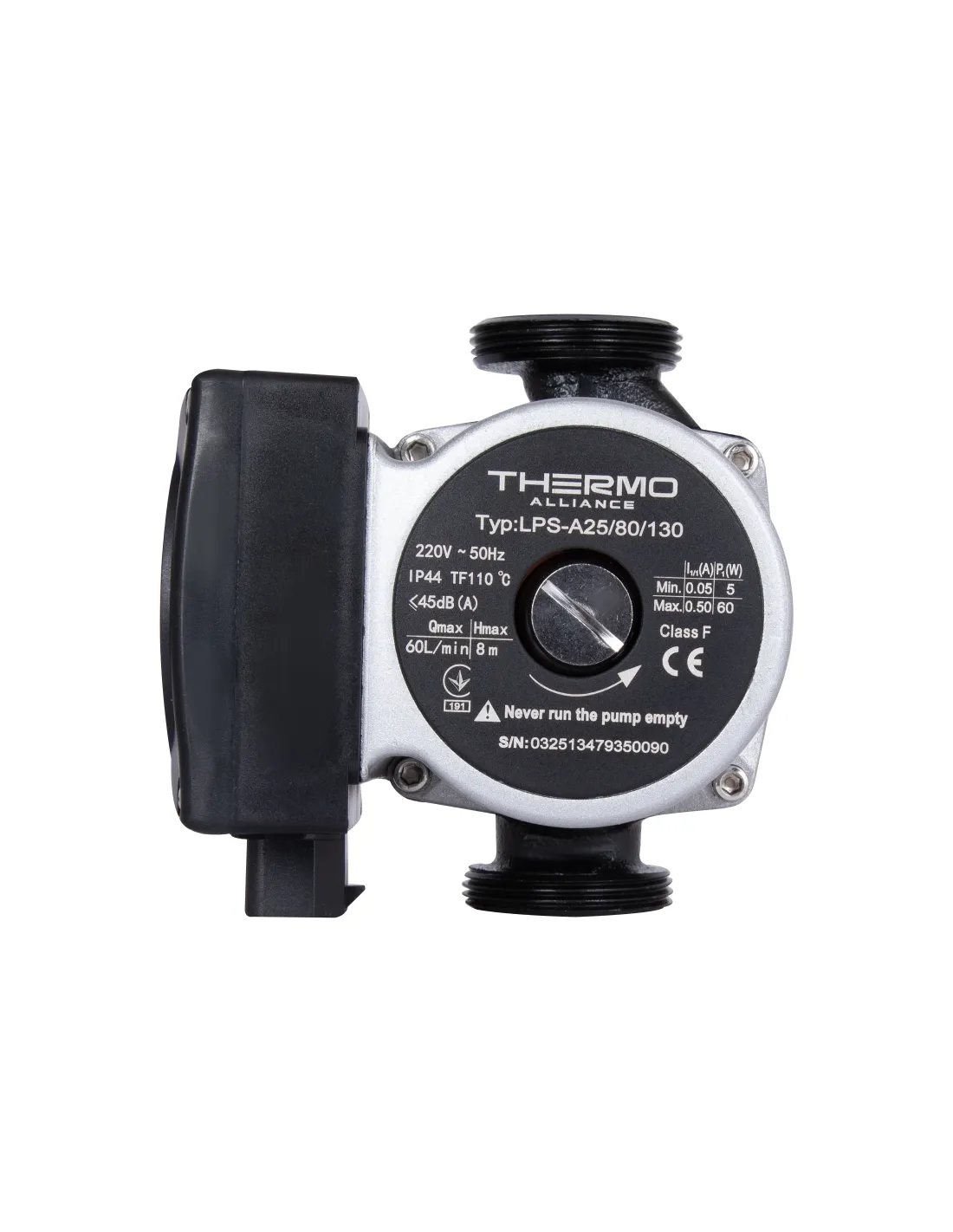Циркуляционный насос Thermo Alliance LPSA 25/80/130 имеет 130 мм межосевое монтажное расстояние и крепится на гайки. Предназначен циркуляционный насос для подачи и перекачивания рабочей жидкости в бытовых системах отопления закрытого и открытого типа, в системах кондиционирования воздуха, в системах водяного теплого пола, в установках, которые используют энергию солнца, а также в других системах со стабильным или практически неизменным объёмом рабочей жидкости.