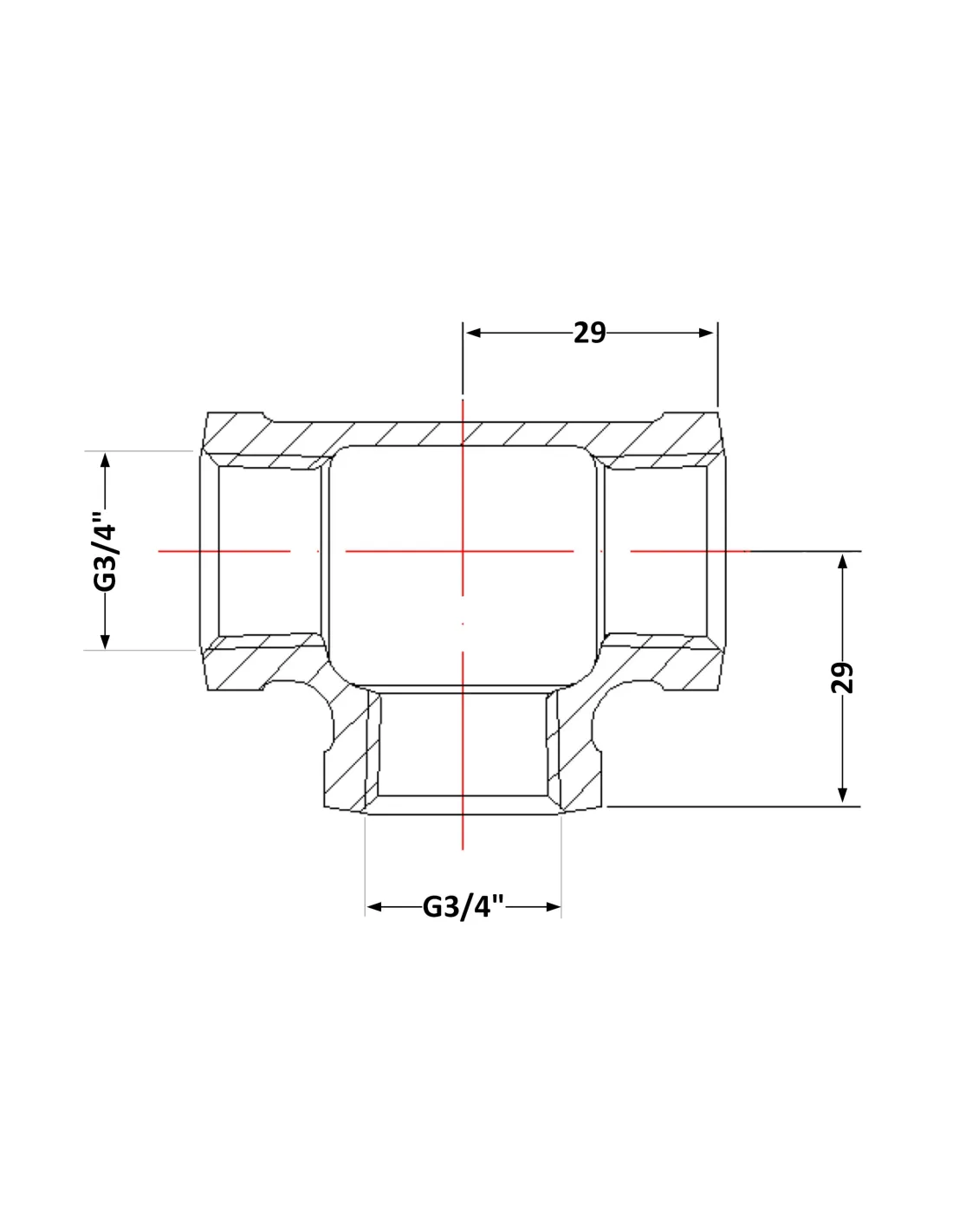 - Тип резьбы: Внутренняя 3/4 дюйма (ВР) со всех трех сторон;