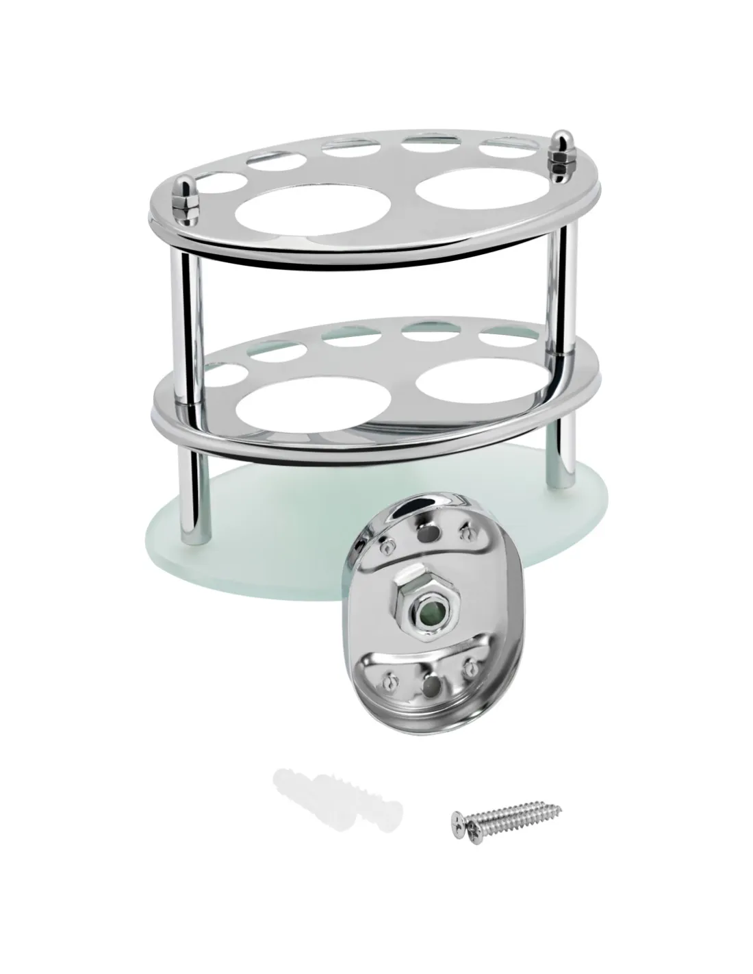 Держатель выполнен из металла и стекла с глянцевой и матовой поверхностью, сочетает современный дизайн и функциональность. Овальная форма изделия компактна и эргономична, подходит для любой ванной комнаты. Крепление осуществляется на стену с помощью шурупов, входящих в комплект. Производитель оставляет за собой право вносить изменения в комплектацию и конструкцию изделий, не ухудшающие качество, без предварительного уведомления.