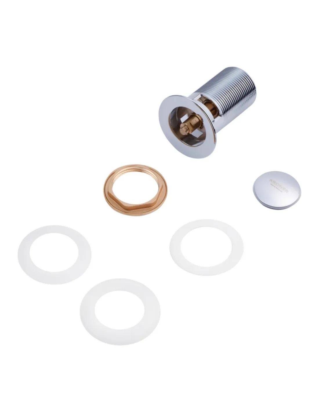 Донний клапан для раковини Kroner KRM - C962-1 – це поєднання зручності, надійності та, звичайно, простоти при використанні. Виріб у разі потреби дозволить перекрити зливне отвір та використовувати раковину як таз, а наявність переливу вбережі від потопу, якщо ви ненадовго відволікалися під час набирання води.