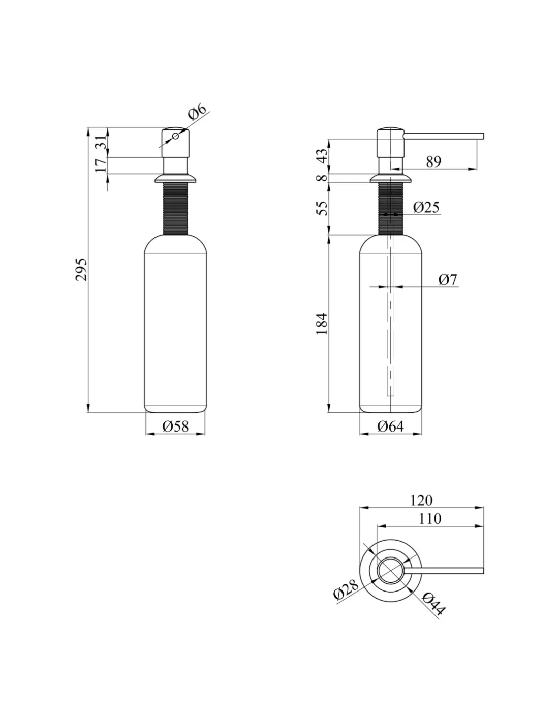 Виливання дозатора з вигіном досить зручне, його тривалості достатньо для подачі миючого засобу на губку. Для отримання порції мила необхідно натиснути на ручку-важіль. Після використання на стільниці чи раковині не залишається слідів від побутової хімії. Заливка миючого засобу здійснюється відкриттям верхньої системи з виливом, не викручуючи знизу колбу.
