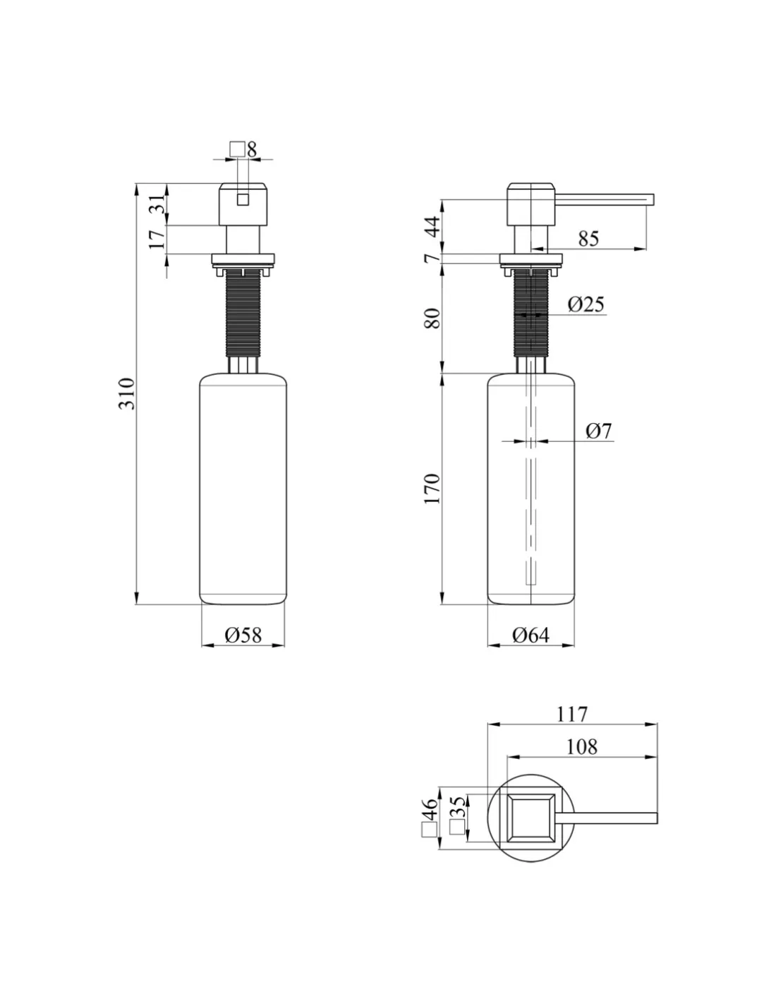Виливання дозатора з вигіном досить зручне, його тривалості достатньо для подачі миючого засобу на губку. Для отримання порції мила необхідно натиснути на ручку-важіль. Після використання на стільниці чи раковині не залишається слідів від побутової хімії. Заливка миючого засобу здійснюється відкриттям верхньої системи з виливом, не викручуючи знизу колбу.