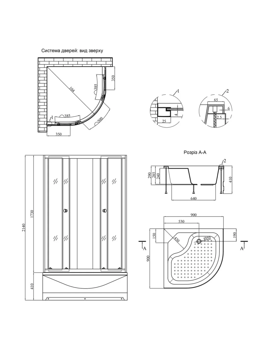 Технические характеристики душевой кабины с высоким поддоном Kroner KRP Eifel - Q.C.F.L. 90x90 см: