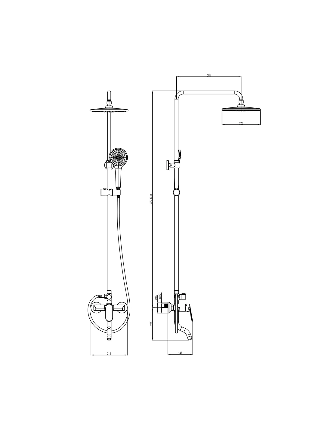 - Верхний душ - круглая лейка, диаметром 226 мм;