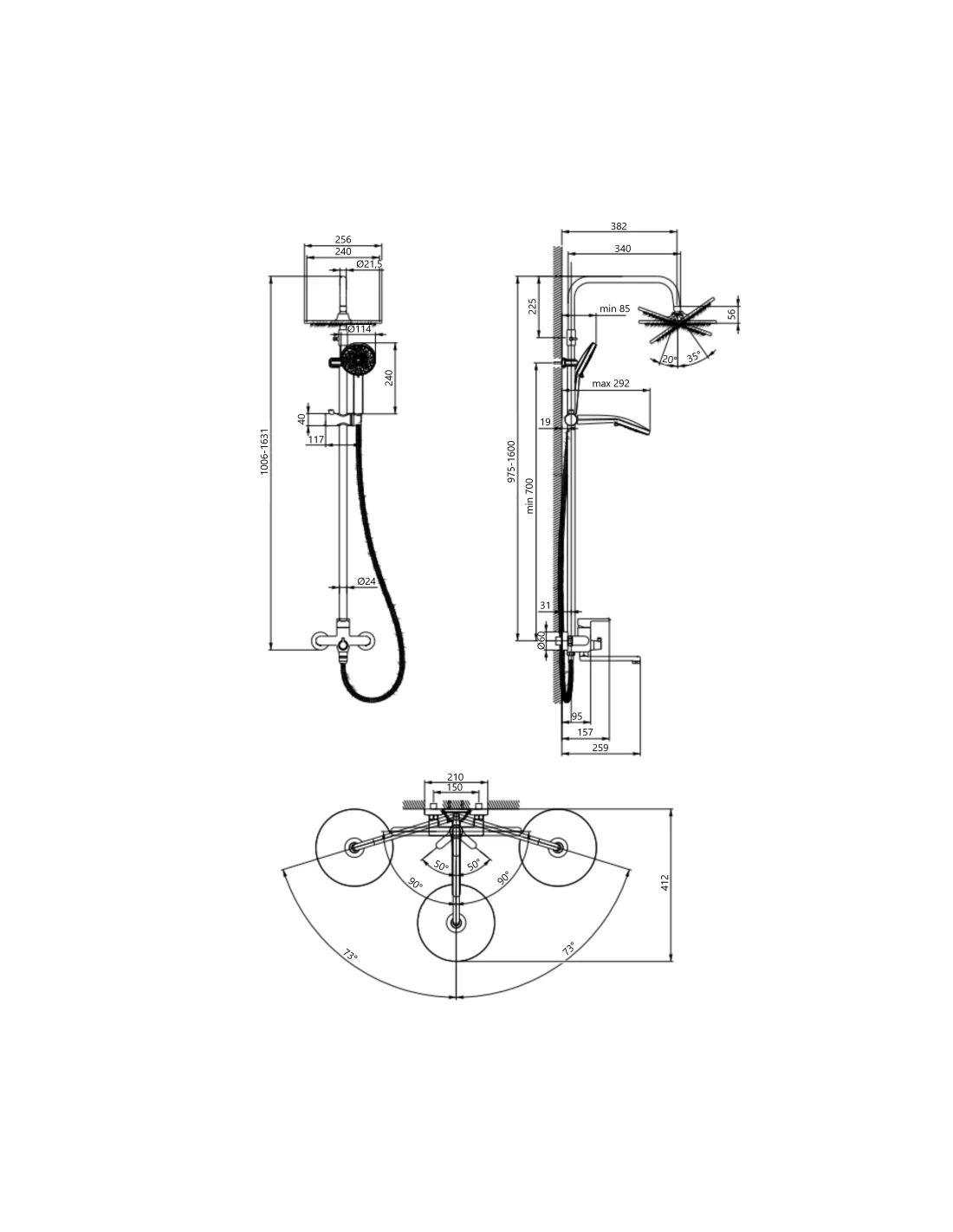 - Верхний душ - круглая лейка, диаметром 256 мм;