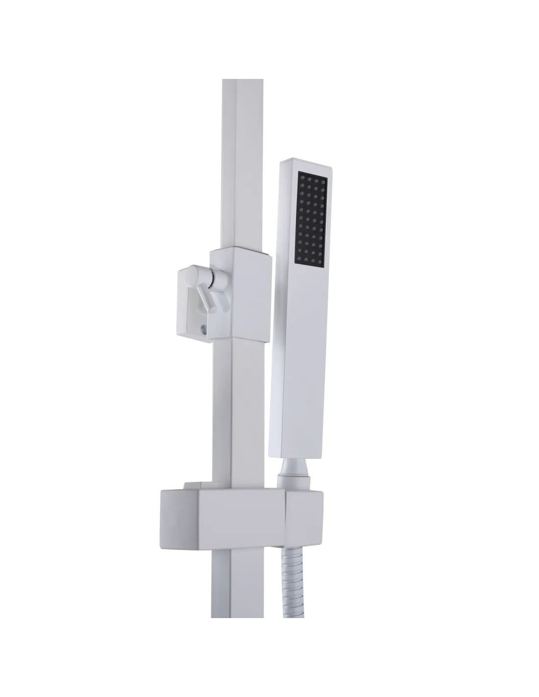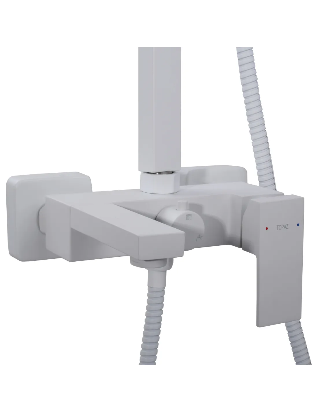 Душевая система с изливом Topaz Odiss TO 18202-H66-WW предназначена для установки и использования в ванной комнате в целях личной гигиены. Душевая система это альтернатива смесителю для ванной. Душевая система изготовлена из латуни, выполнена в белом цвете. Управление подачей воды осуществляется при помощи рычага, через который можно подавать воду на верхний душ, ручной душ или излив. В комплектацию также входит телескопическая штанга и крепления для фиксации. Гарантия 12 месяцев. Страна-производитель: Польша.
